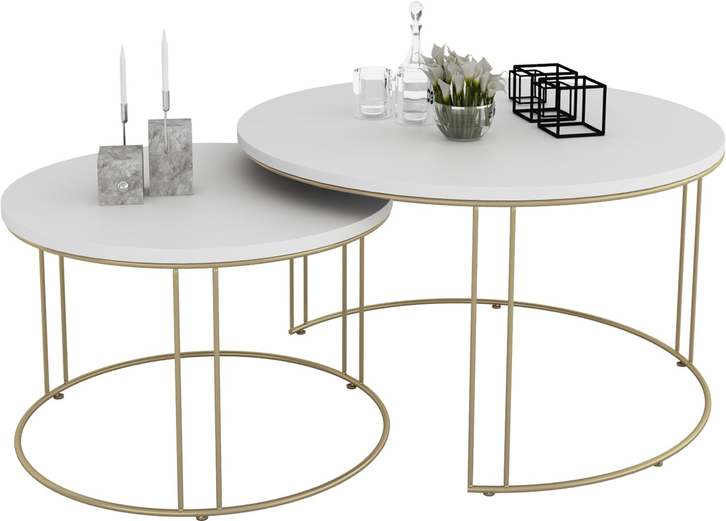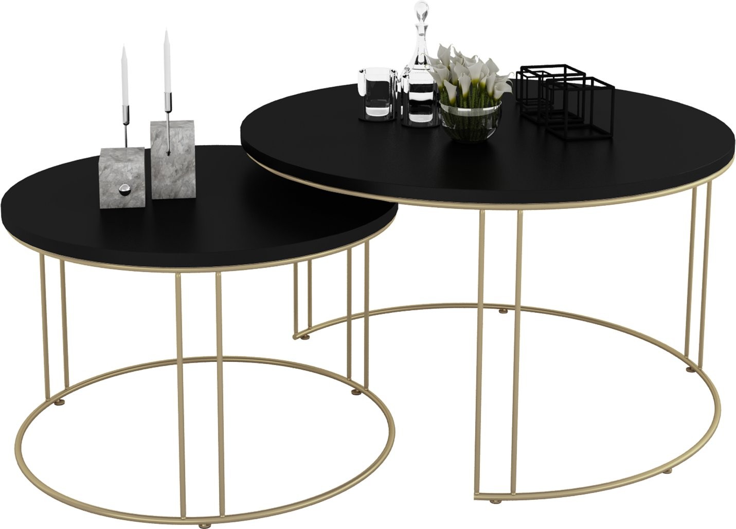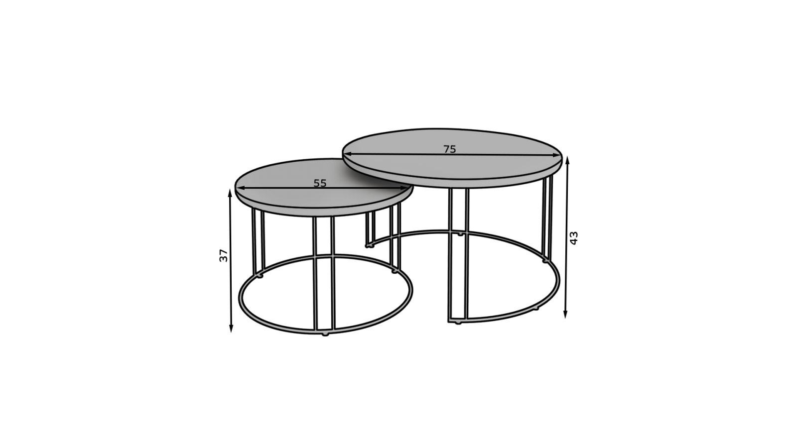 Komplet vsebuje dve mizici različnih dimenzij, ki ju lahko poljubno kombinirate ali uporabljate ločeno. Njuna vsestranskost omogoča uporabo kot klubski mizici, stranski mizici ob sedežni garnituri ali celo kot dekorativni element v prostoru.