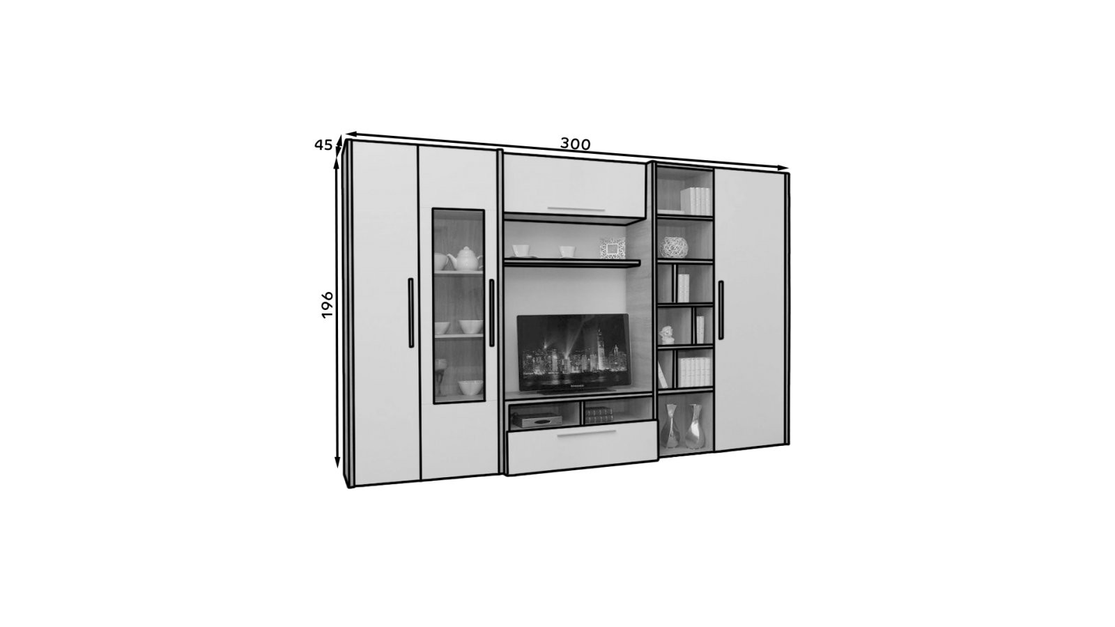 Moderna dnevna sestava SMERA je popolna izbira za vsak sodoben dom. Združuje funkcionalnost, eleganco in prostornost, kar omogoča optimalno shranjevanje in estetsko dopolnitev vaše dnevne sobe.