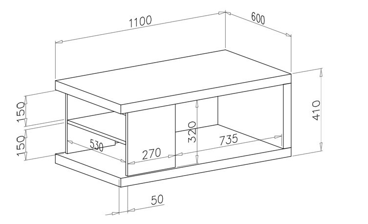 Mizica je izdelana iz kakovostnih materialov in ima dodatno polico za shranjevanje vsakodnevnih predmetov, kot so revije, daljinci ali dekorativni dodatki.