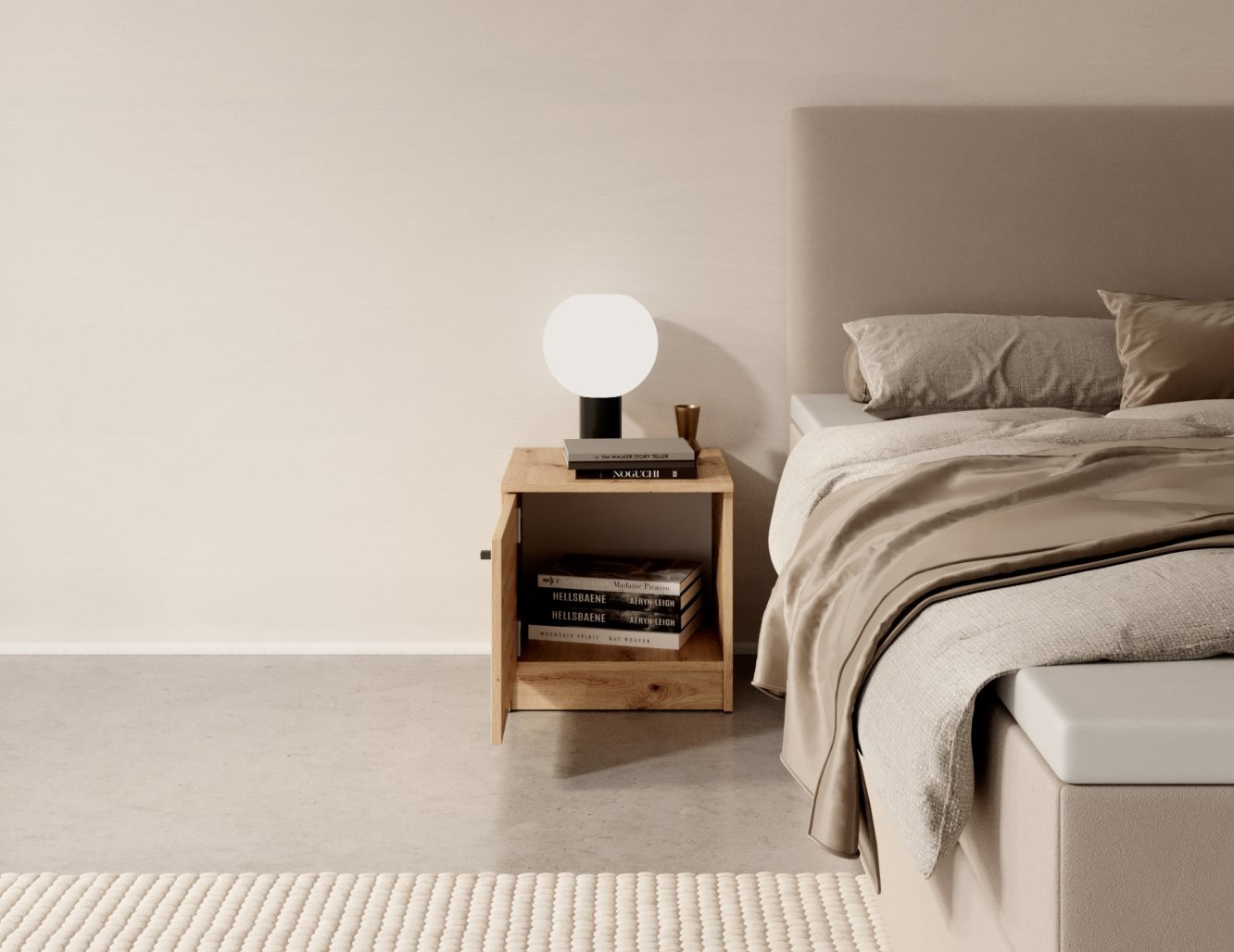 Popestrite svojo spalnico z nočno omarico Evi, ki združuje eleganco, toplino in funkcionalnost v enem kosu pohištva.