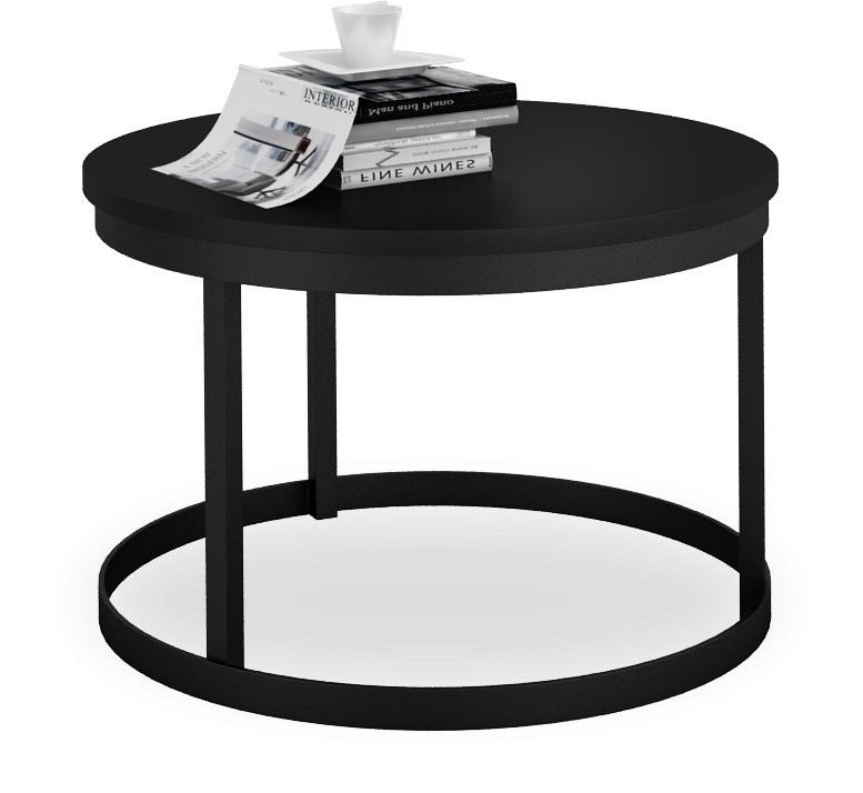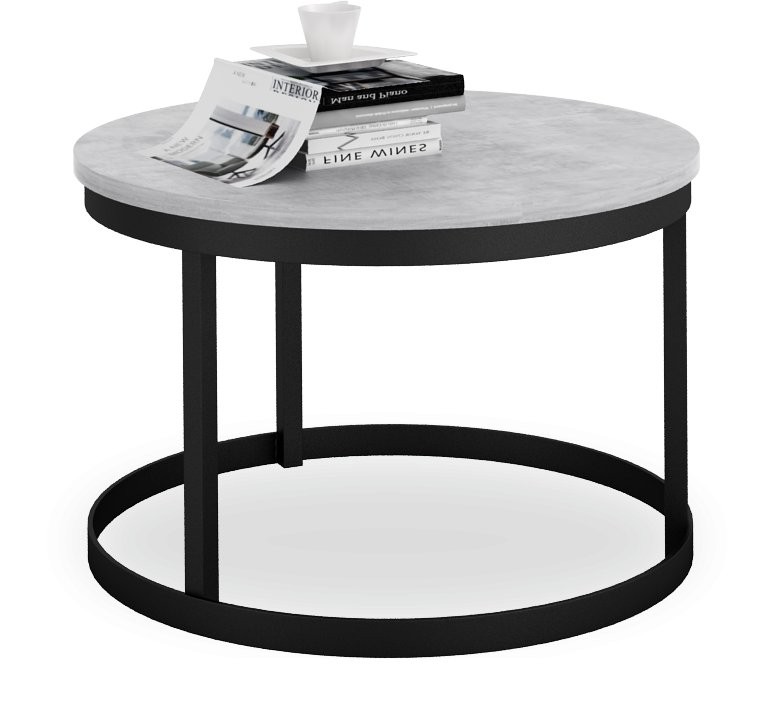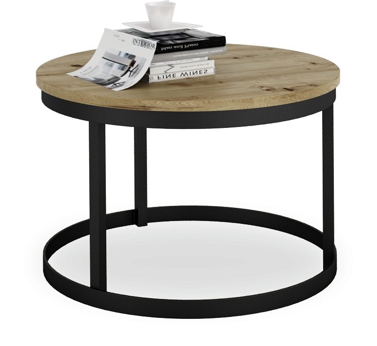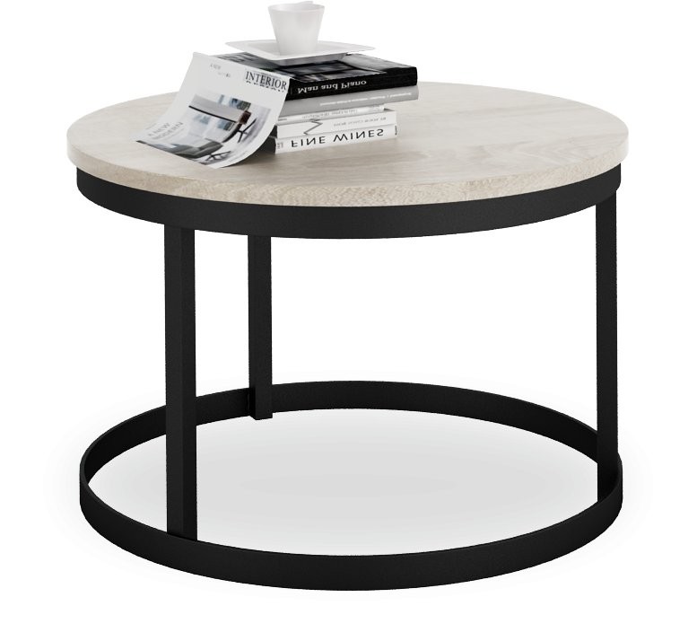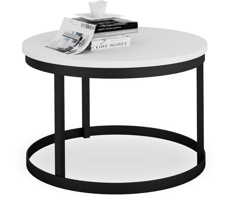 Moderna okrogla kavna mizica RINEN s kovinskim podnožjem in laminirano ploščo je elegantna izbira za vsak sodoben dnevni prostor.