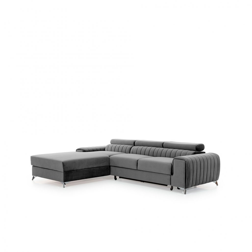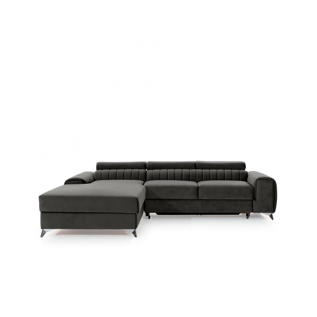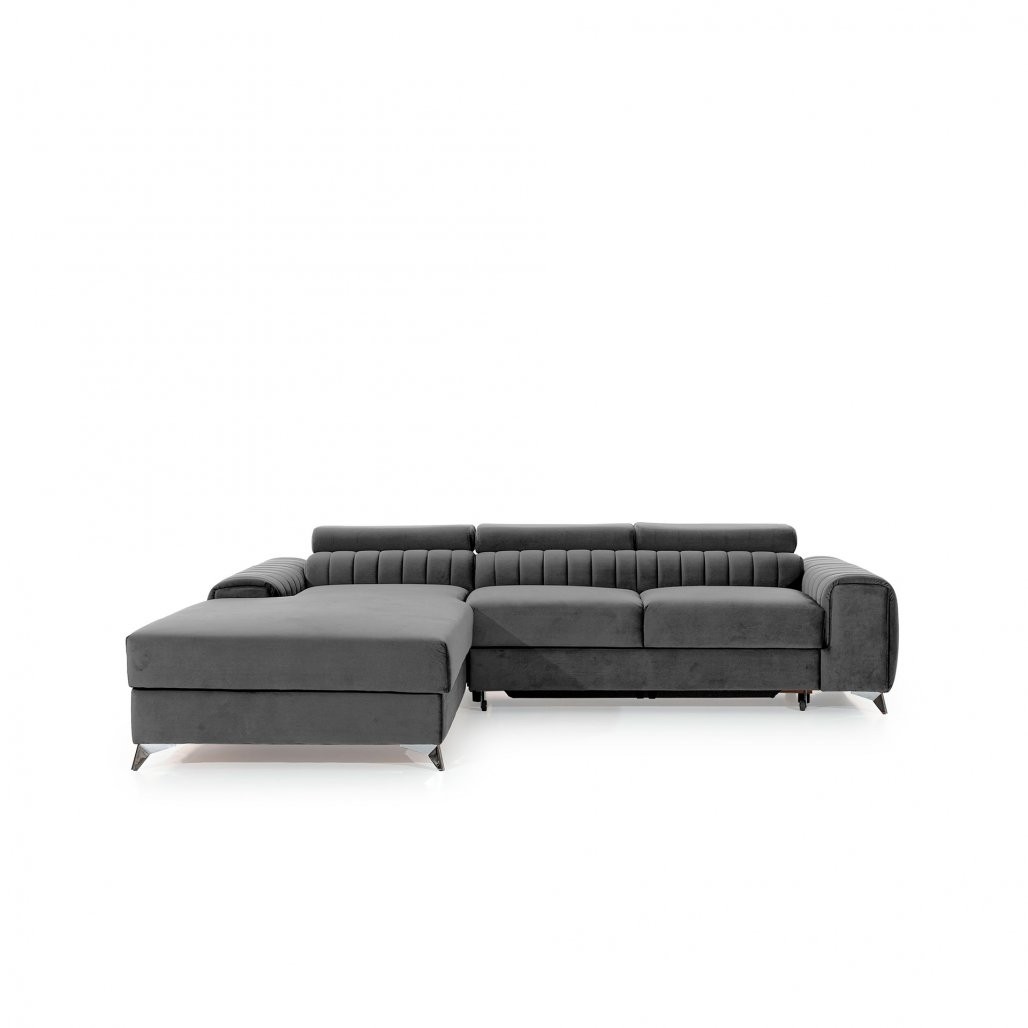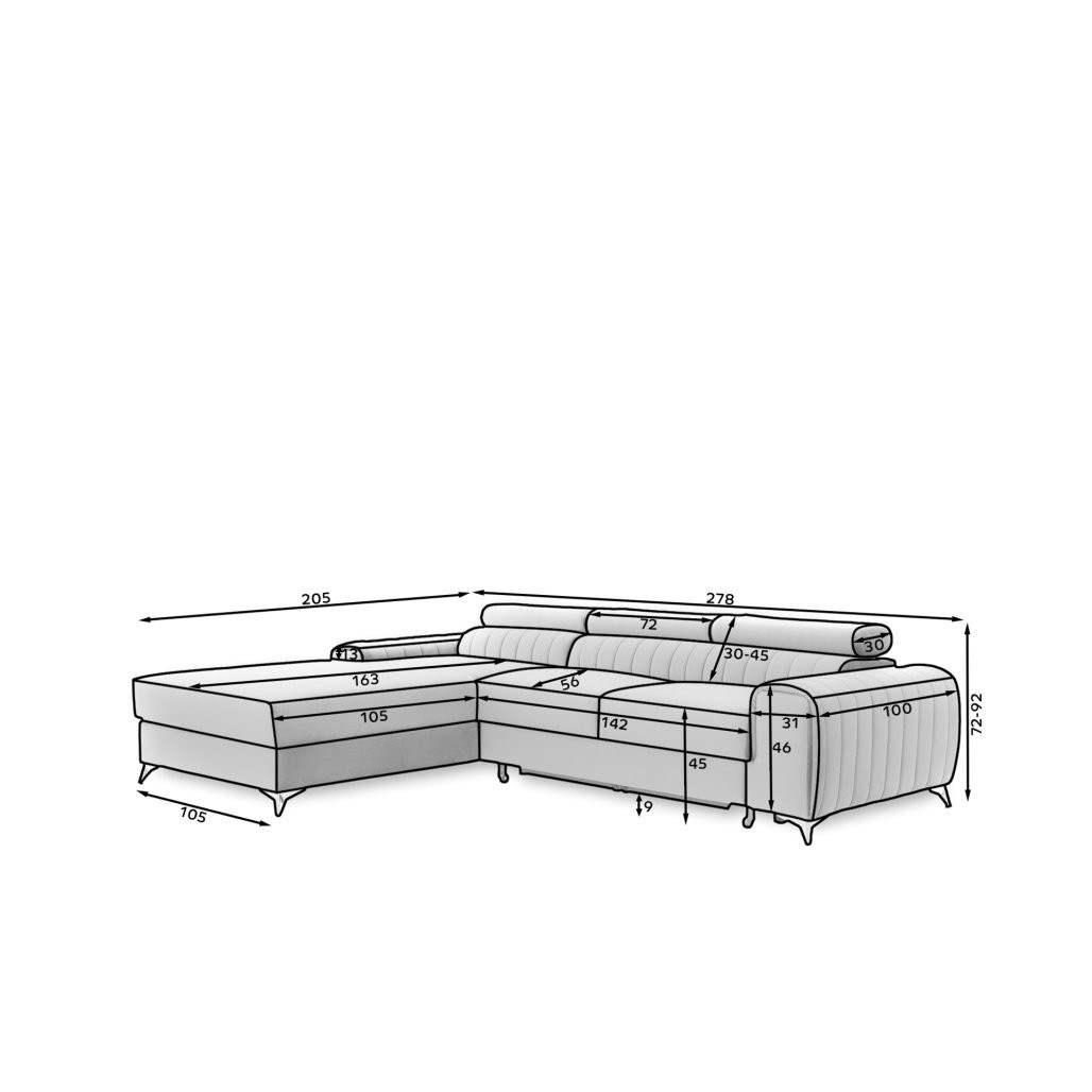 Ta sedežna garnitura je opremljena z inovativno peno T30+HR, ki zagotavlja izjemno elastičnost, odpornost proti deformacijam in dolgotrajno udobje. Poleg tega vključuje tudi funkcijo ležišča in praktičen predal za shranjevanje posteljnine.