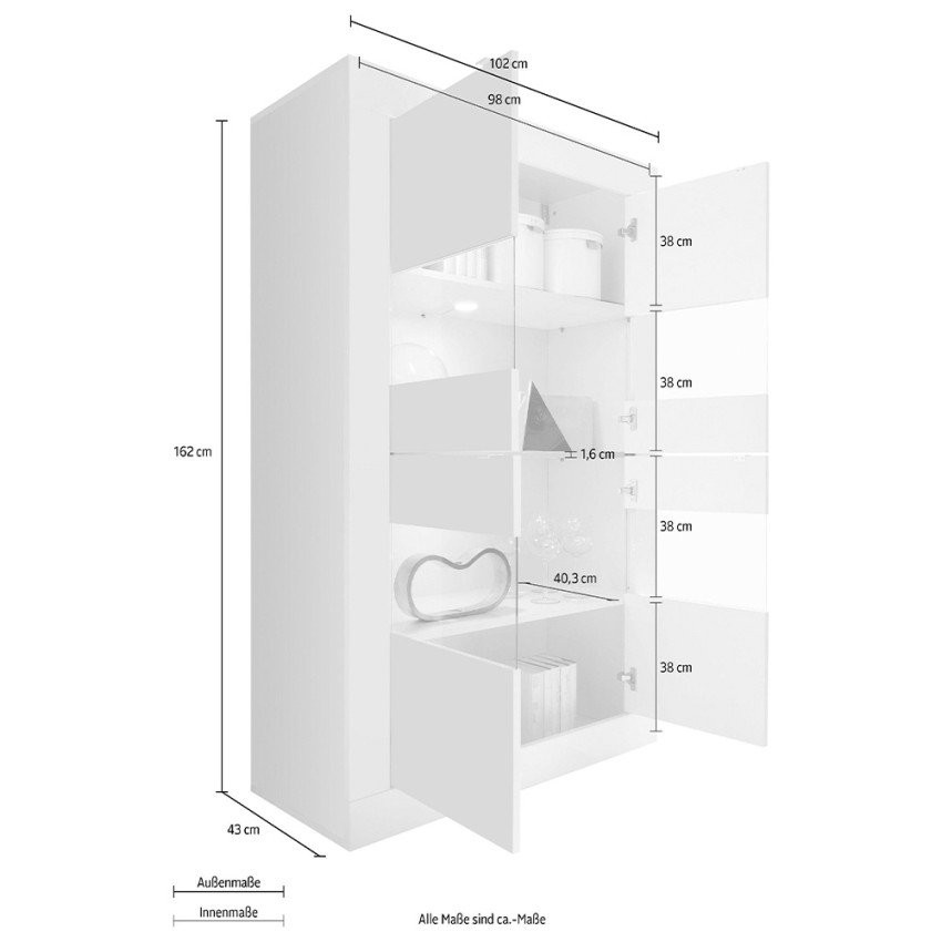 Ta elegantna vitrina je popolna izbira za vsak sodoben interier, saj združuje funkcionalnost in estetski videz. S tremi prostornimi policami ponuja dovolj prostora za shranjevanje in razstavljanje kristalov, srebrnine ali dekorativnih predmetov.