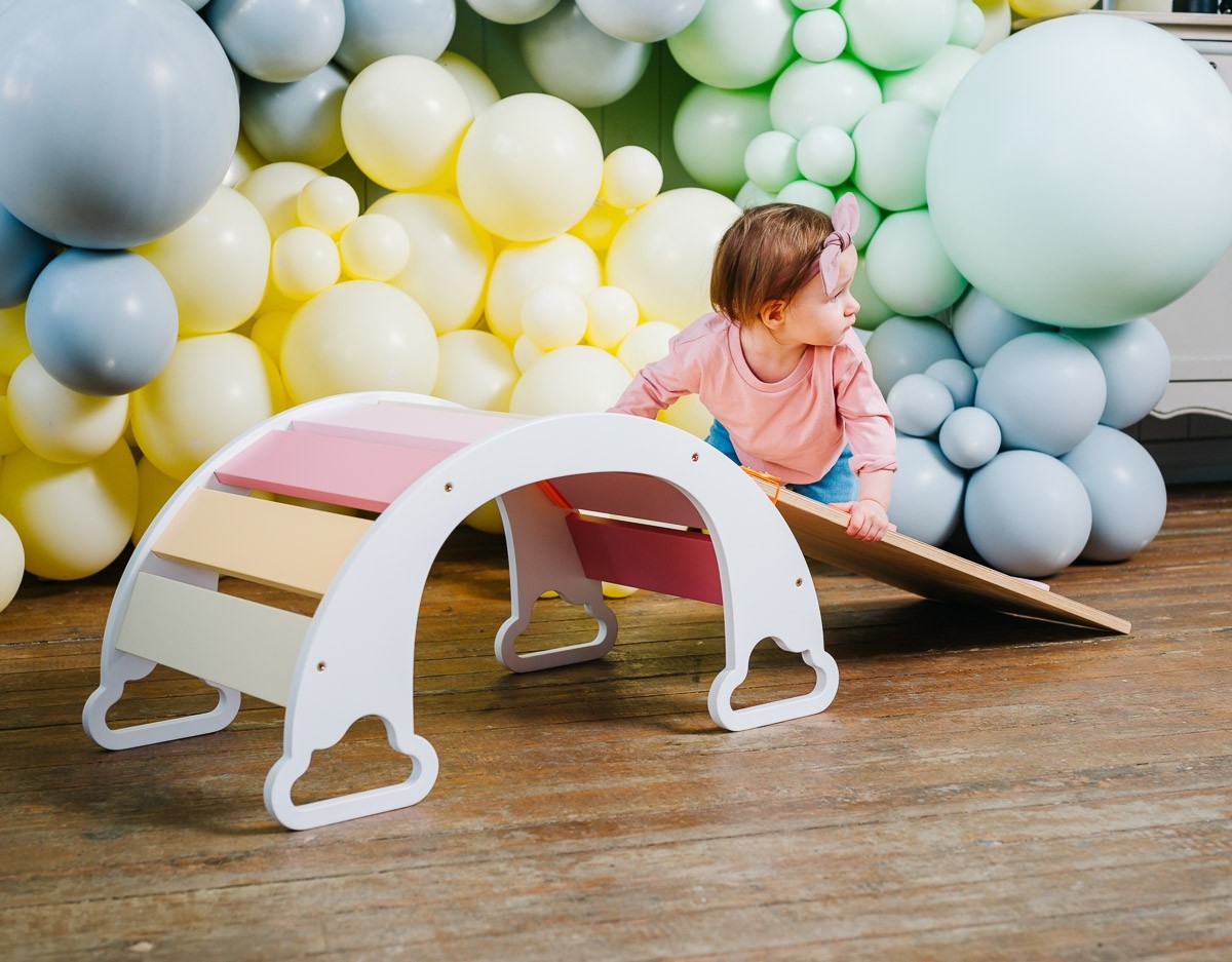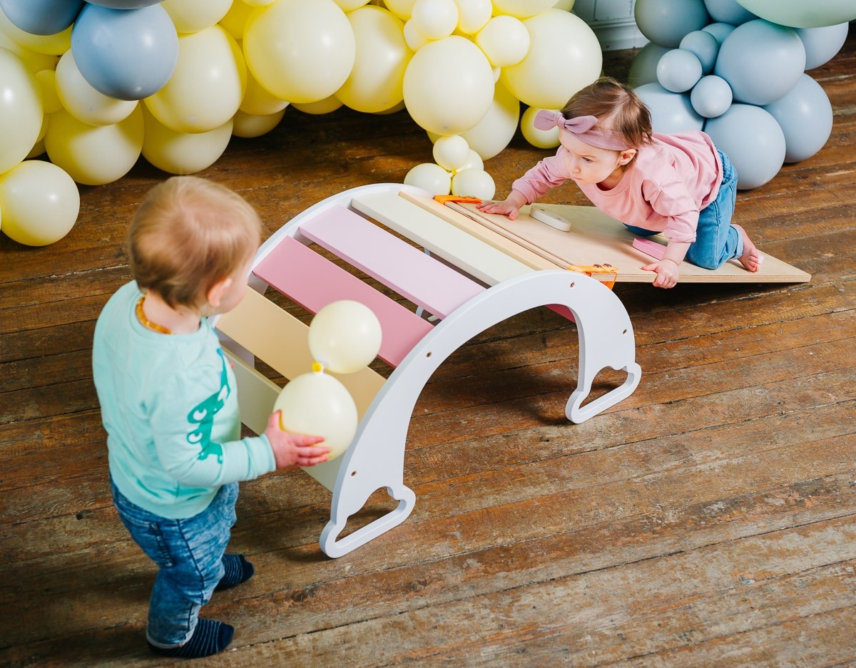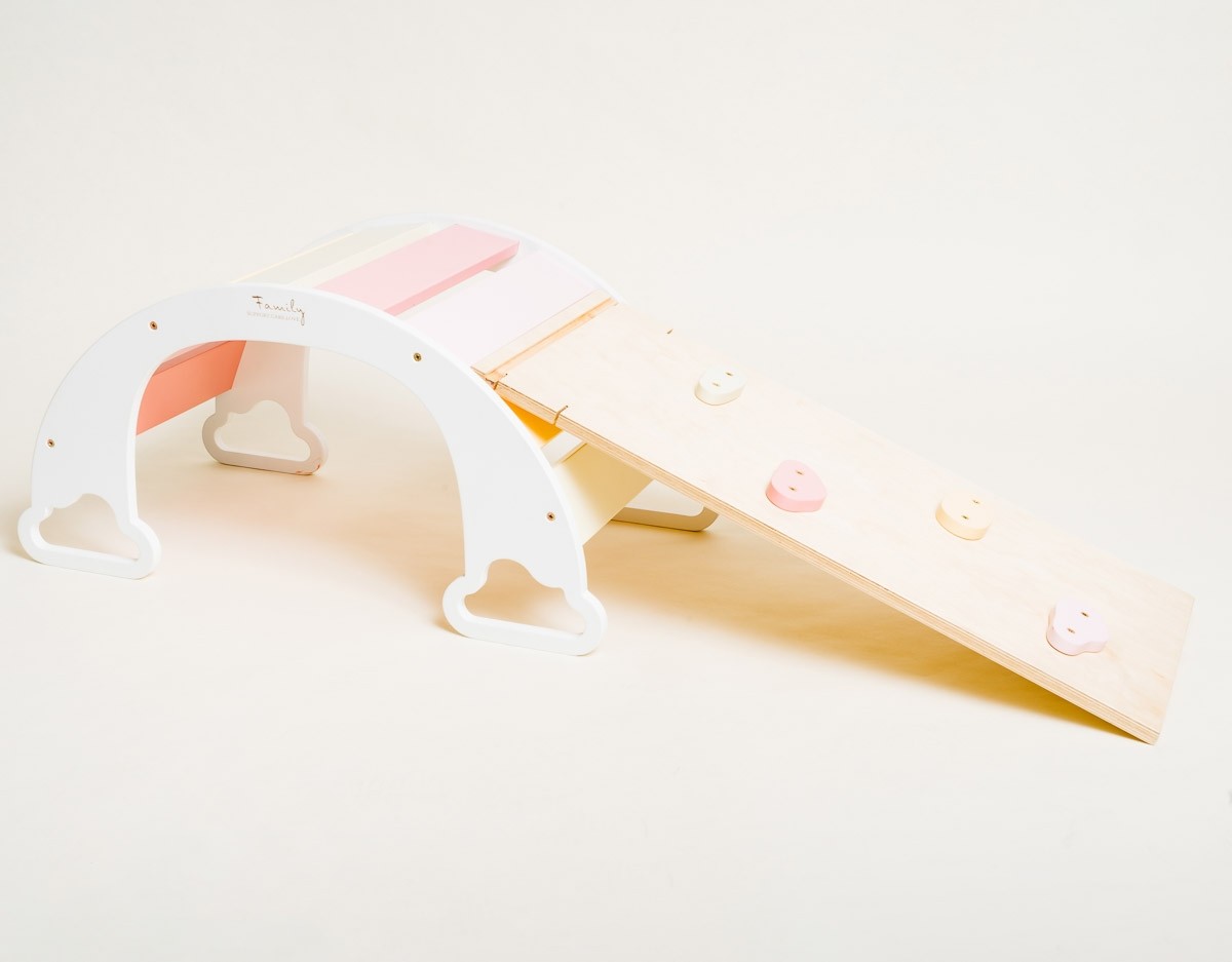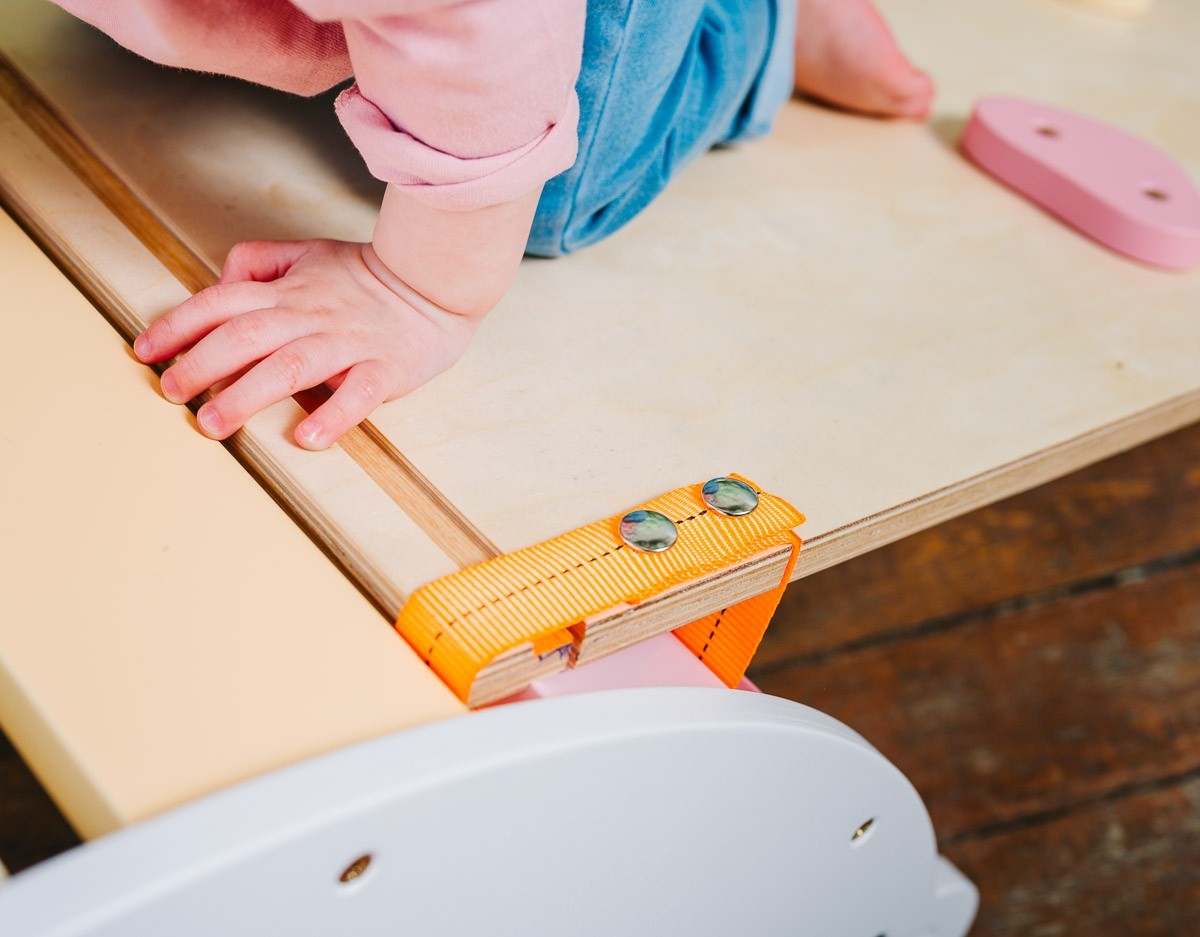 MONTESSORI GUGALNICA S PLEZALNO STENO je odlična igrača za razvoj motoričnih in kognitivnih sposobnosti vašega malčka. Izbirate lahko med tremi različnimi barvnimi kombinacijami, med katerimi boste zagotovo našli tisto pravo, ki bo v veselje vašemu otroku. Plezalno steno lahko na enostaven način montirate ali odstranite iz gugalnice, katero lahko otrok uporablja tudi za plezanje, ali kot pult za igranje različnih iger.