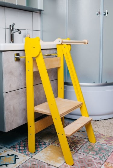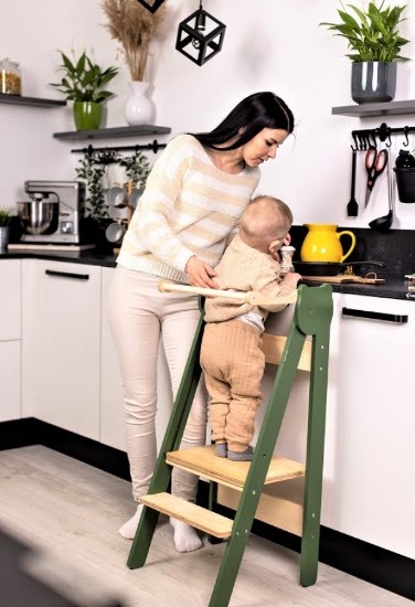 MONTESSORI ZLOŽLJIV POMAGALČEK je varen, zložljiv in priročen dodatek za vsakega malčka, saj bo z njim lažje dosegel višje površine, ki mu še niso dostopne. Pomagalček omogoča otroku, da doseže višje površine in se samostojno giblje, odkriva in raziskuje. Primeren je za otroke različnih starosti, saj ima po višini nastavljivo stopničko, katero lahko regulirate glede na višino otroka. Na voljo je v številnih različnih barvah, ki bodo popestrile vaš dom. Maksimalna nosilnost je 50 kg, ne priporočamo uporabo otrokom, mlajšim od 18 mesecev.