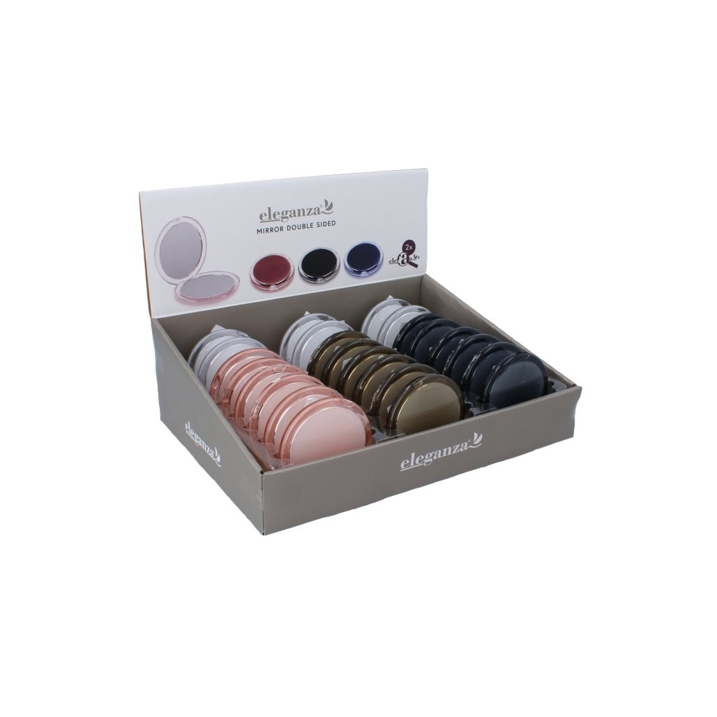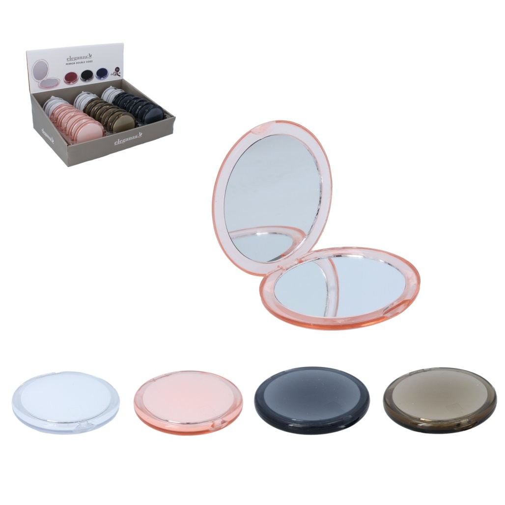 Premer ogledala je približno 10 cm. Ena stran je klasična, druga povečevalna. Zasnova je lahka in priročna za prenašanje. Okrogla oblika in zložljiv mehanizem omogočata hitro uporabo in varno shranjevanje.