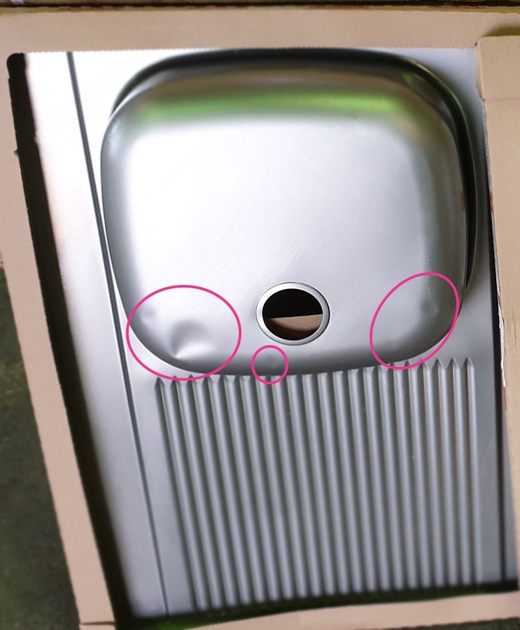 Izdelek je popolnoma nov, neuporabljen. Zaradi napake v transportu pa ima v dnu poškodbe/udrtine. Slike v galeriji.