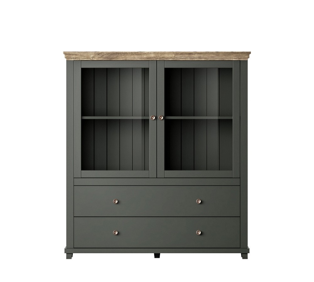 Nizka vitrina EVORA vam bo s svojim rustikalnim izgledom modernih barv poživela dom in naredila vašo dnevno sobo prijetnejšo. Ima veliko odlagalne površine kamor lahko spravite kozarce, krožnike in ostale stvari, ki jih želite imeti na vidnem mestu. Na voljo je v zeleni barvi.
