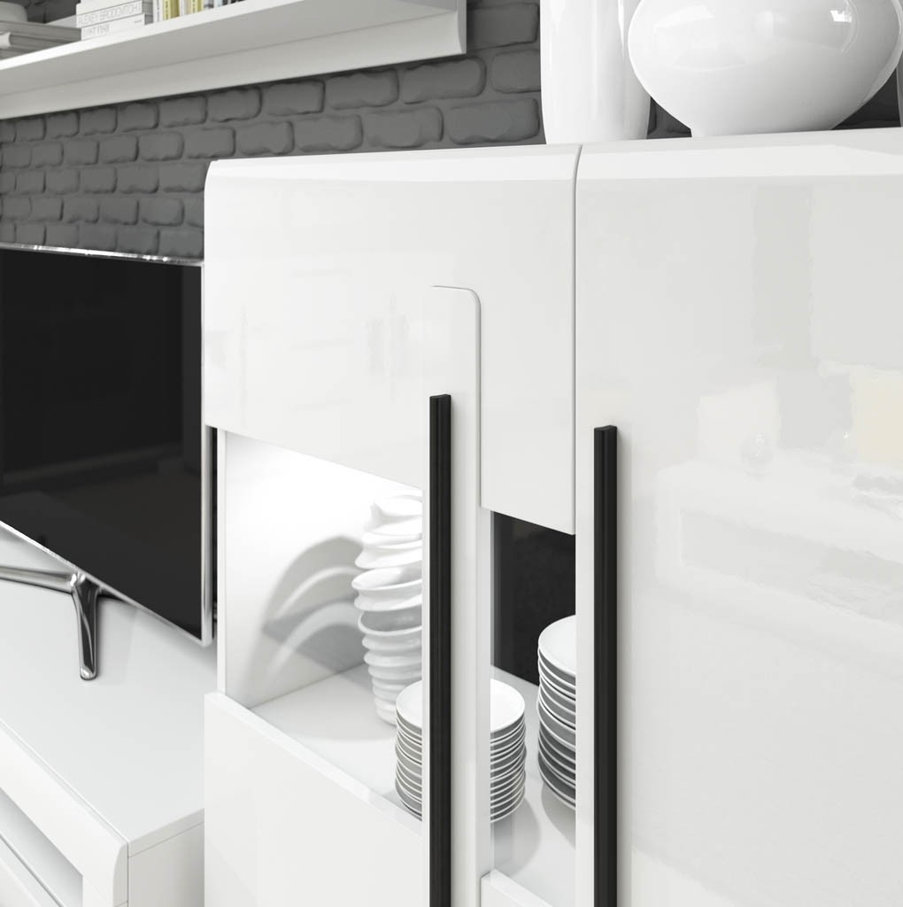 Kolekcija VILNA je na voljo v beli barvi v visokem sijaju, ki skupaj s črnimi ročkami ustvari eleganten in moderen videz pohištva. Visoki sijaj prinese v dom več svetlobe in ga tudi optično poveča, zato bo vaš dom videti bolj prostoren in eleganten. Na voljo je tudi v topli barvi hrasta.