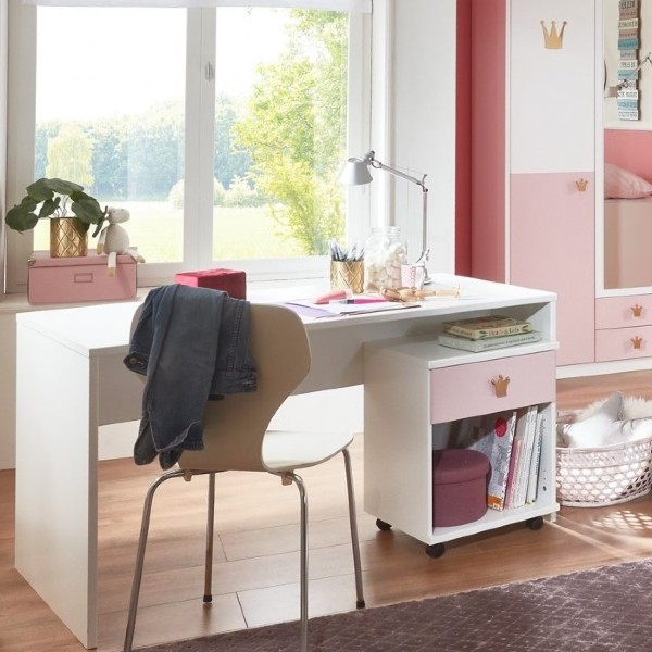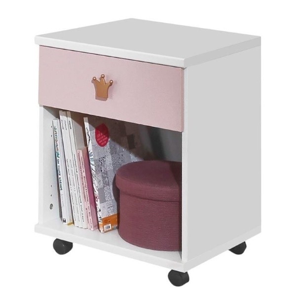 Nočna omarica CARA je na voljo v prelepi kombinaciji bele in roza barve in z dekoracijo v obliki krone, ki bo v veselje vsaki deklici. Ima priročno polico in predal za shranjevanje, tako da lahko vanjo otrok pospravi vse svoje najljubše knjigice. Oglejte si še ostale artikle iz te kolekcije!