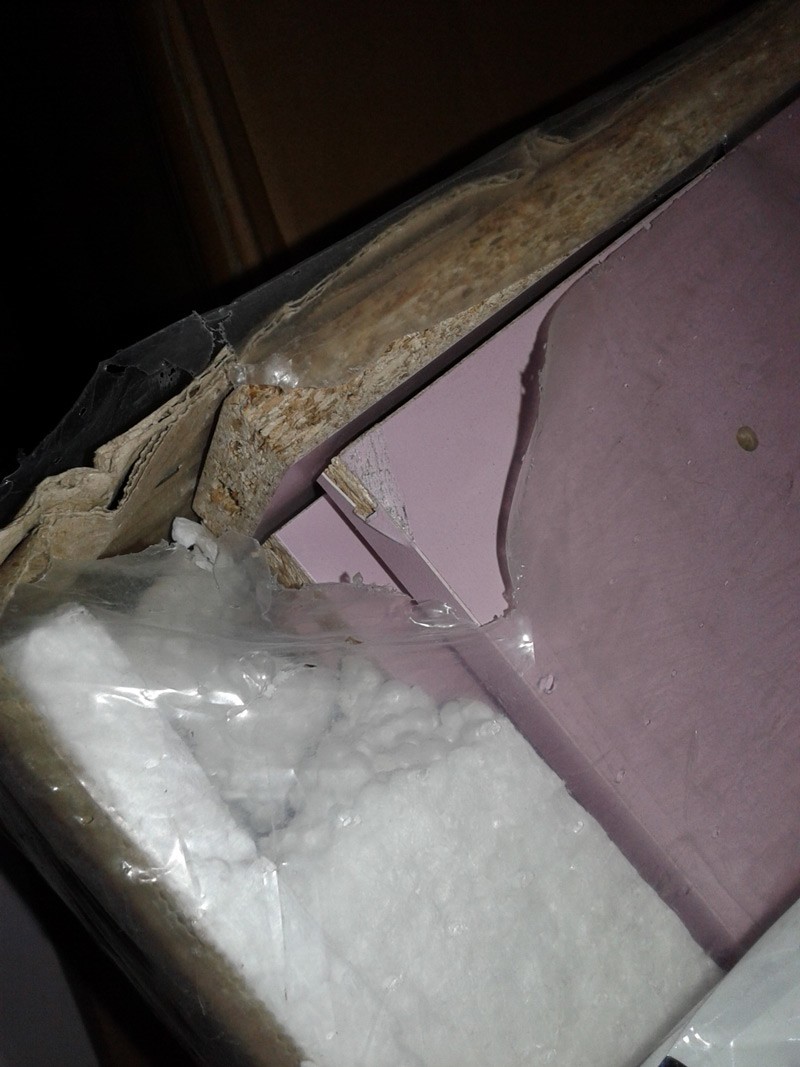 Del elementa pri nočni omarici je poškodovan - uničena embalaža. Poškodba je vidna na priloženi sliki!
