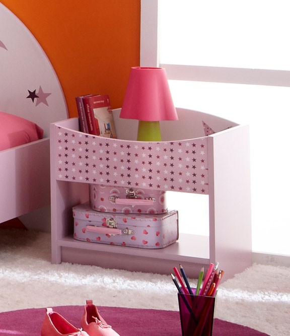 Nočna omarica Fairy (EKSPONAT) roza barve z vzorcem je del linije Fairy. Omarica Ppimerna za dekliške sobe.