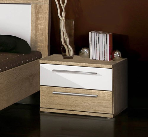 Nočna omarica Julietta ima dva predala. Tako kot vsi izdelki iz linije Julietta odlično kombinira visoki sijaj in svetel naraven les.