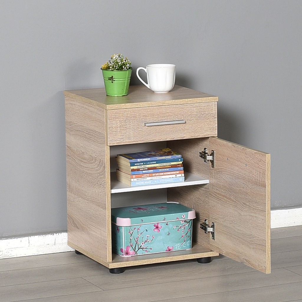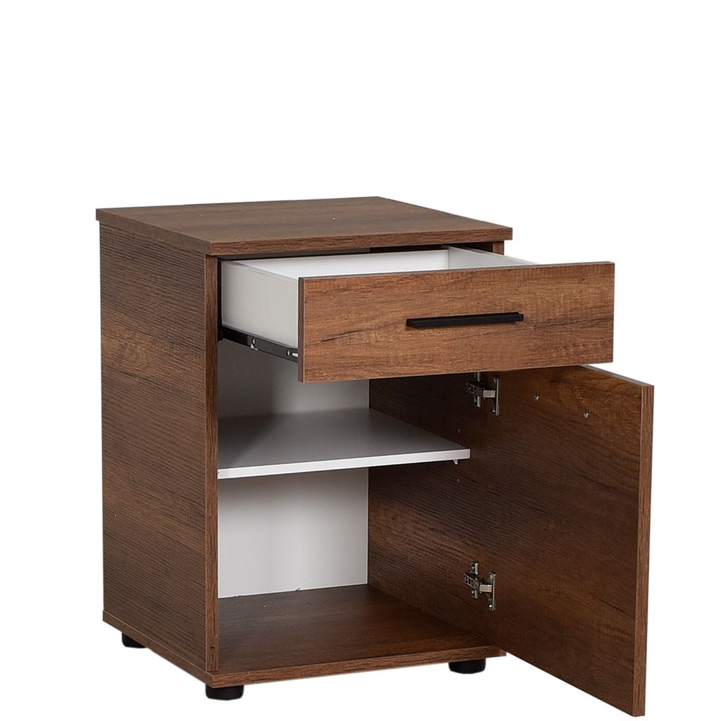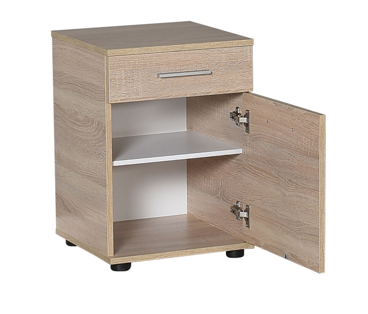 Nočna omarica KAMADU 2 je na voljo v treh različnih barvah, ki se lepo podajo v vsako spalnico, otroško in mladinsko sobo. Na vrhu ima priročen predal, spodaj pa velik prostor za shranjevanje z eno polico in klasičnimi vratci.