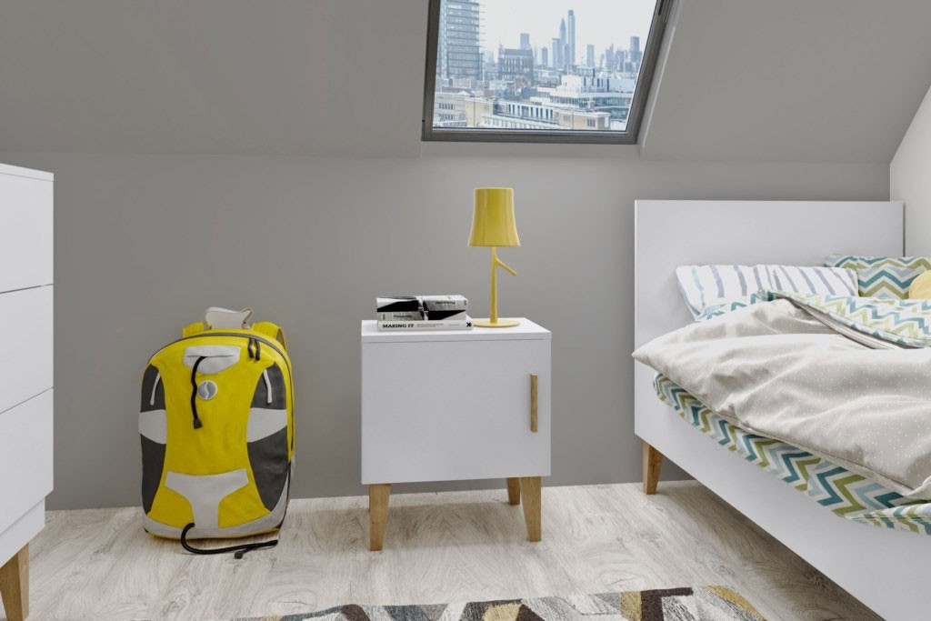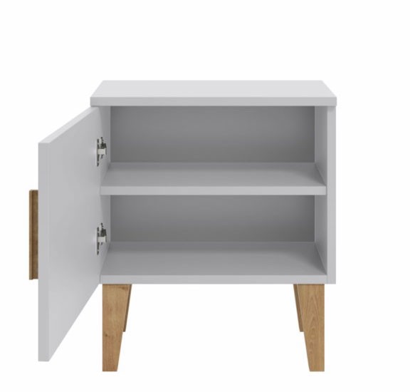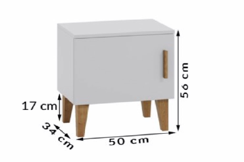 Nočna omarica KELLY je izjemno priročna, saj ne zavzame veliko prostora in vam nudi prostor za odlaganje in shranjevanje predmetov, katere želite imeti vedno pri roki. Vanjo lahko pospravite knjigo, polnilec za telefon in razne malenkosti, na zgornjo ploščo pa lahko odložite telefon, kozarec vode in nočno lučko.