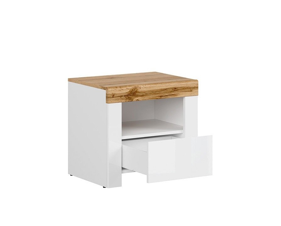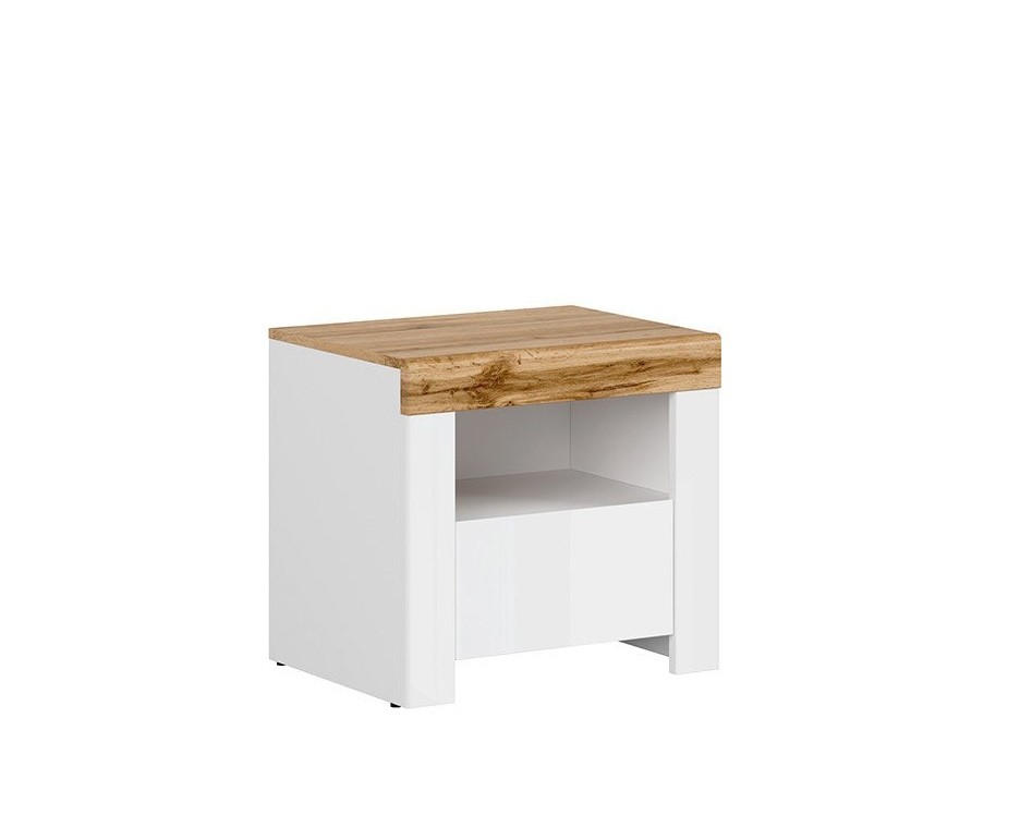 Nočna omarica NOEL se zaradi svoje minimalistične barvne kombinacije odlično poda v vsako spalnico! Ima odprto polico in predal za shranjevanje v katerega lahko pospravite razne malenkosti, za katere želite da so vedno na dosegu roke. Zgornja plošča v barvi hrasta vam nudi dovolj prostora za nočno lučko, kozarec vode, telefon ter vaše najljubše knjige. Predal ima funkcijo tihega zapiranja, ki pripomore k lažji vsakodnevni uporabi ter preprečuje nastajanje prask in poškodb.