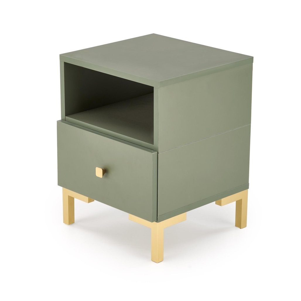 Nočna omarica Raltek združuje prestiž in sodobnost. Zlati odtenki v kombinaciji z zelenimi toni prinašajo pridih prestiža, ki se bo odlično prilegal vsaki moderni spalnici.