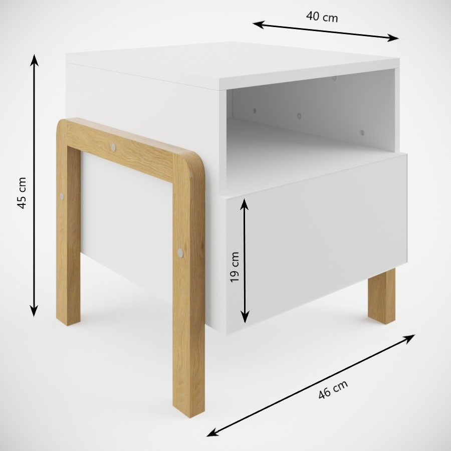 Nočna omarica je nepogrešljiv dodatek k vsaki spalnici, otroški, mladinski ali dnevni sobi saj se zaradi svojega minimalističnega in univerzalnega lepo poda v vsak prostor in se lahko uporabi za različne namene. Razdeljena je na en predal in odprto polico in vam nudi dovolj prostora za shranjevanje in odlaganje vseh predmetov katere želite imeti vedno na dosegu roke.