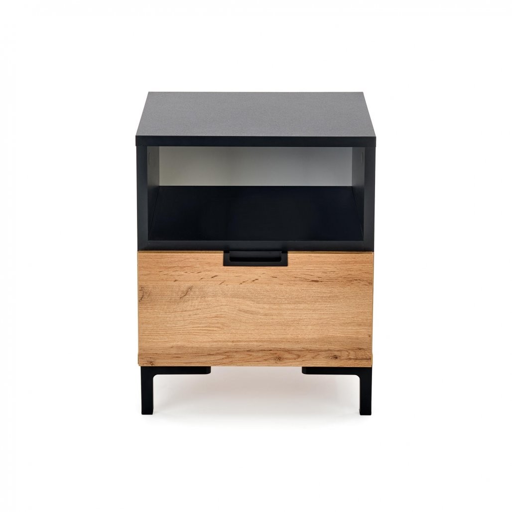 Zasnovana je tako, da so vaše najpomembnejše stvari vedno na dosegu roke. Sestavljena je iz praktičnega predala in odprte police, na njen zgornji del pa lahko udobno postavite nočno svetilko, budilko ali telefon. Njena dimenzija 40x40x52 cm je popolna za večino spalnic, ne da bi zavzemala preveč prostora. Nočna omarica je na voljo v barvni kombinaciji wotan hrasta in črne, kar prinaša občutek topline in sodobnosti.