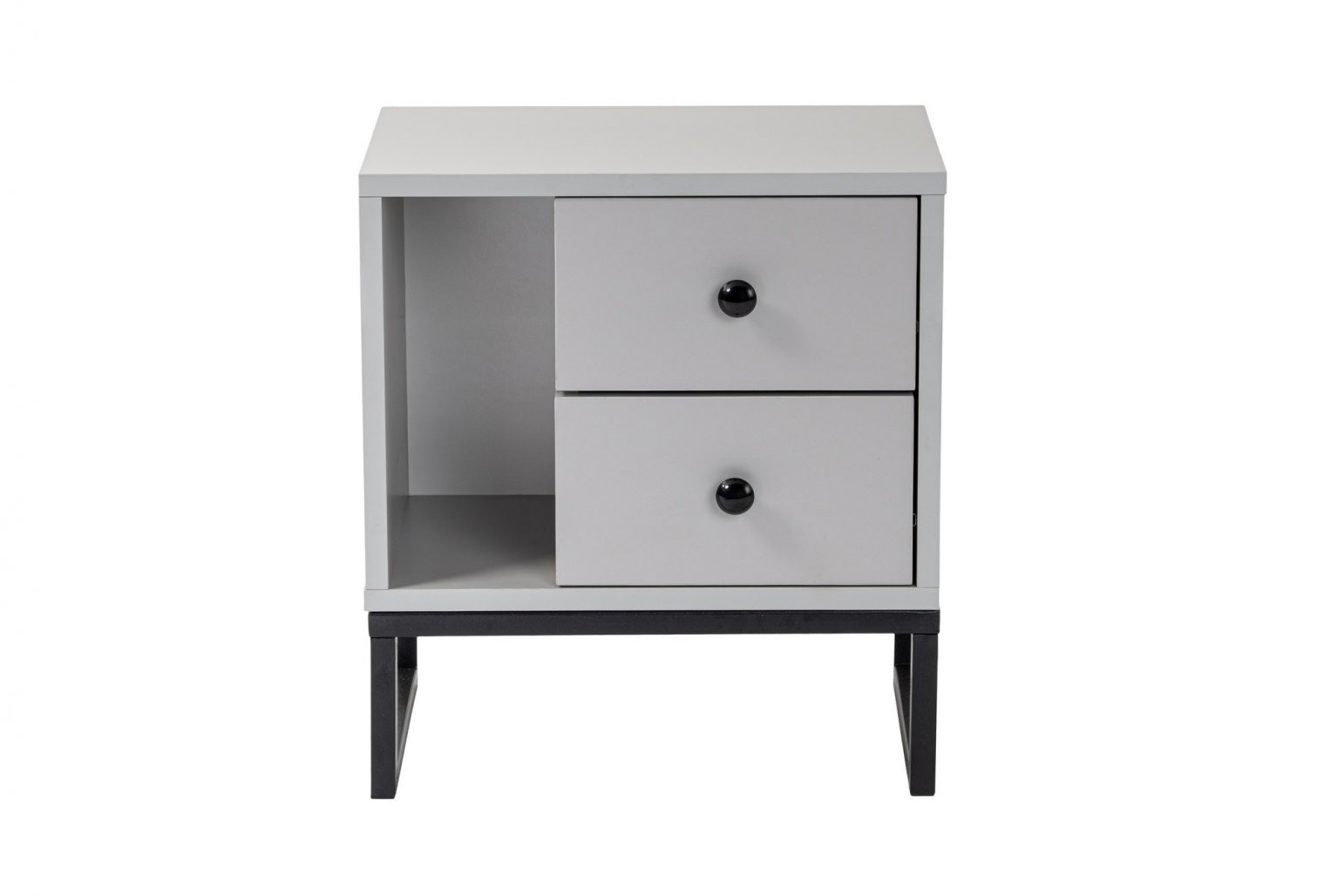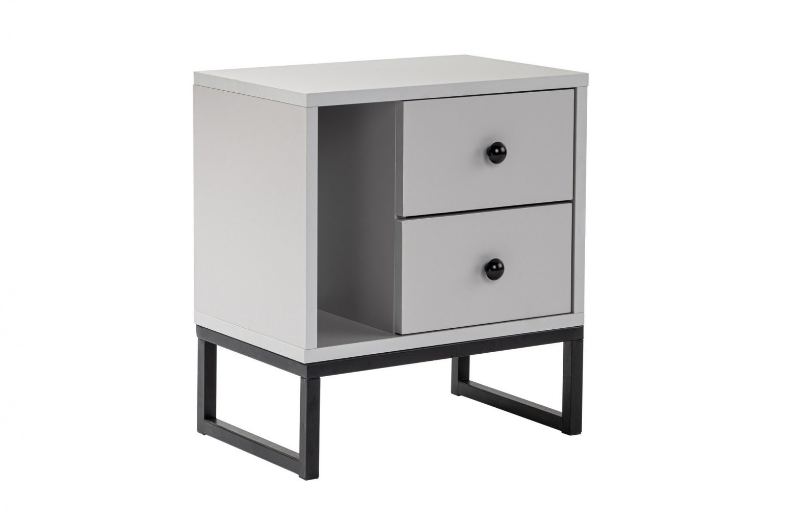 Z našo nočno omarico se poslovite od prenatrpanih nočnih omaric in pozdravite organizirano eleganco. Elegantna oblika in nevtralna barvna paleta sive in črne barve omogočata, da jo zlahka vključite v vsak stil spalnice, od minimalističnega do modernega.