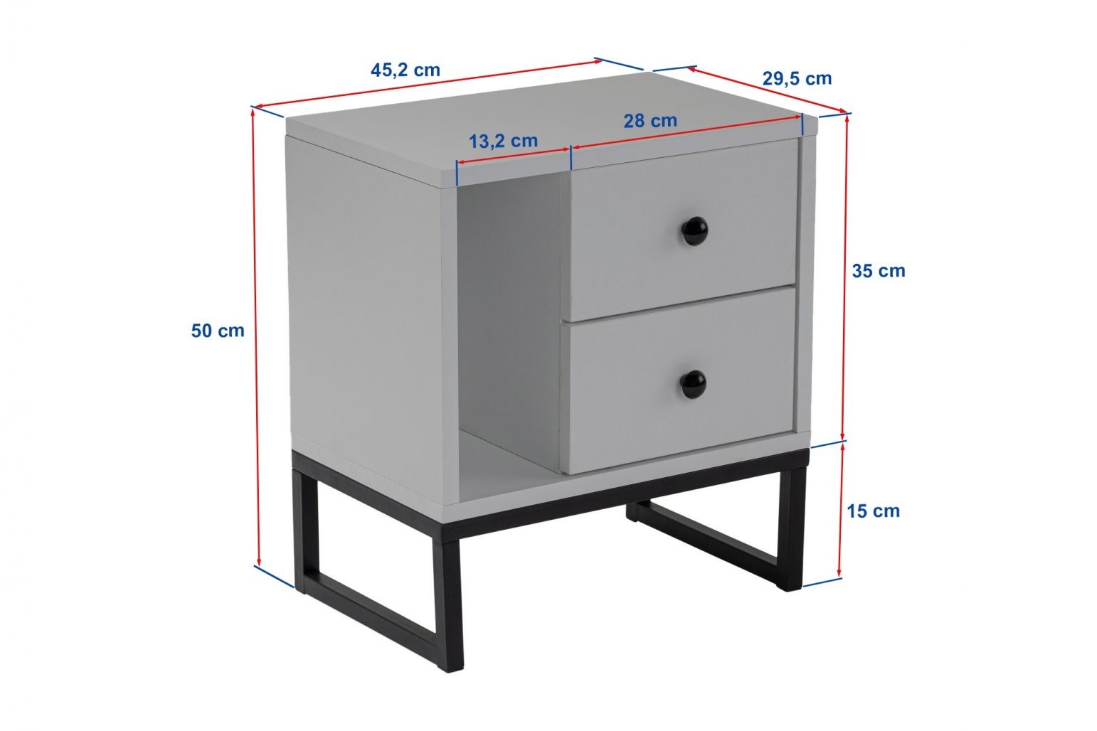 Z našo elegantno in sodobno nočno omarico spremenite svojo spalnico v svetišče sloga in funkcionalnosti. Nočna omarica je izdelana iz 100-odstotno melaminirane iverne plošče, zato ni le trpežna, ampak jo je tudi enostavno čistiti, kar zagotavlja, da bo dolga leta videti kot nova. Kovinske noge dodajajo pridih prefinjenosti in stabilnosti, zato je ta nočna omarica popoln dodatek k dekorju vsake spalnice.