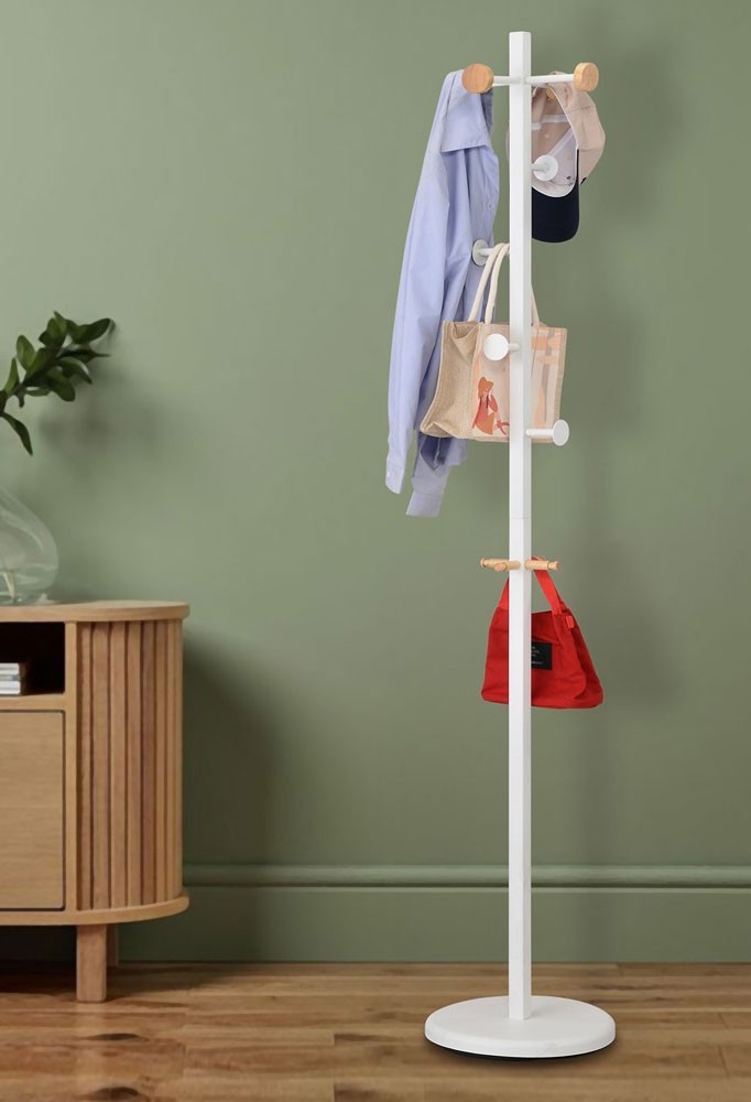 Obešalnik za plašče IMON je visok 174 cm in je na voljo v beli ali črni barvi. Lesene kljuke na obešalniku so naravne barve. Glavni steber je izdelan iz kovinske cevi iz jeklene pločevine, prašno lakiran, in ima ojačano talno ploščo s premerom 28 cm. Obešalnik lahko nosi do 18 kg, pri čemer lahko 4 najnižje kljuke nosijo do 0,5 kg, medtem ko lahko 4 zgornje in 4 osrednje kljuke nosijo do 2 kg.