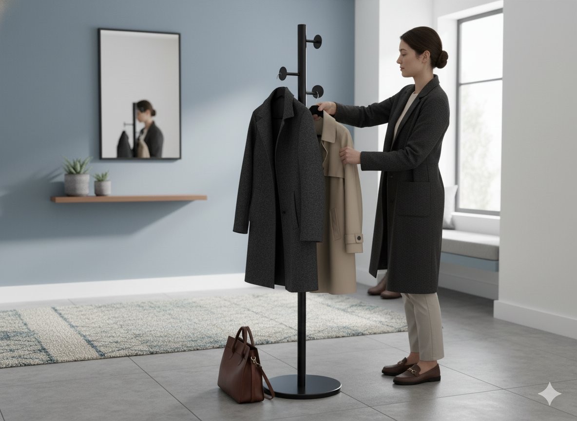 Uporaben je v predsobi, spalnici ali garderobi, kjer pomaga ohranjati oblačila in dodatke na dosegu roke. Navedene mere olajšajo načrtovanje postavitve v prostoru. Višina 174 cm je praktična za vsakodnevno uporabo.