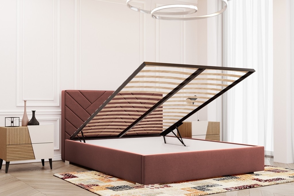 Oblazinjena postelja BABINE ima dvižni mehanizem, ki se z lahkoto uporablja in vam nudi izkoristek celotnega prostora pod posteljo za shranjevanje posteljnine, letnih oblačil, vzglavnikov in odej ter ostalih poljubnih predmetov. Vaše omare bodo zato ostale lepo urejene in ne bodo prenatrpane. Predal pod posteljo je razdeljen na dva dela in je visok približno 14 cm.