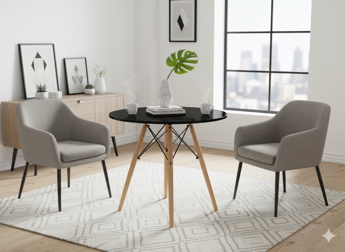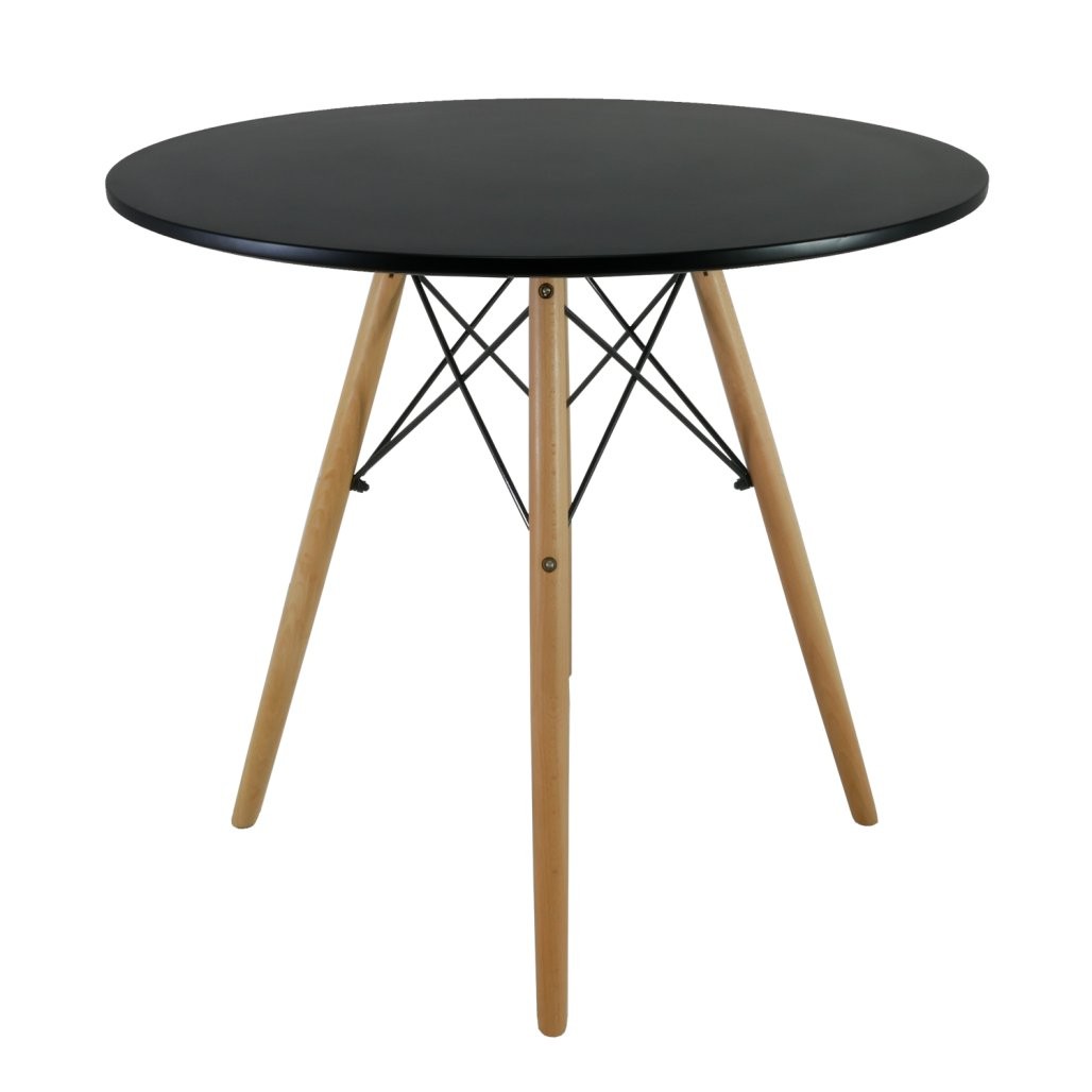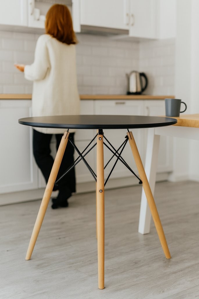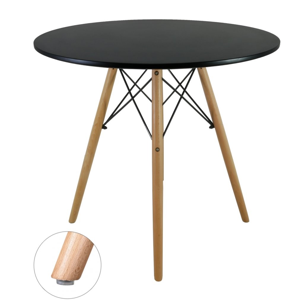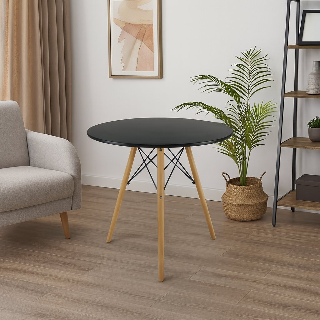 Okrogla miza Ronik z lesenimi nogami (črna) je uporabna miza z jasnimi linijami in vsestransko namembnostjo. Črna barva deluje elegantno in se lepo poda različnim ambientom. Pri izdelavi so uporabljeni materiali, kot so les in MDF.