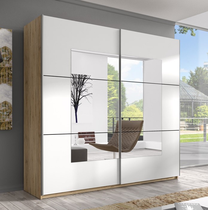 Omara z drsnimi vrati in ogledalom Beta (svetla San Remo-bela) vam bo pomagala rešiti problem pri shranjevanju , saj nudi več kot dovolj prostora za vsa vaša oblačila. Notranji del omare je razdeljen na dva dela. Ena polovica vsebuje polico in drog za obešanje, druga polovica pa 4 praktične police.