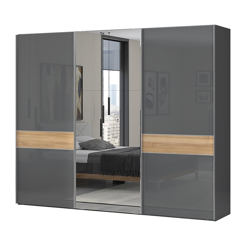 Privoščite si izjemno prostorno in funkcionalno omaro KALLA ONYX, ki vključuje veliko priročno ogledalo (sestavljeno iz treh delov), 9 velikih polic in 3 palice za obešanje, zato lahko vanjo pospravite vsa vaša oblačila in modne dodatke in jih tudi dobro organizirate. Vrata omarice imajo funkcijo tihega zapiranja, ki nudi lažjo vsakodnevno uporabo. Oglejte si še ostale artikle kolekcije KALLA ONYX za elegantno in stilsko dovršeno spalnico! Zunanjost omare je premazana z UV lakom, ki je veliko bolj odporen na vlago, praske in poškodbe kot standardni laki, zato bo vaša omara dlje lasa ostala lepo ohranjena!