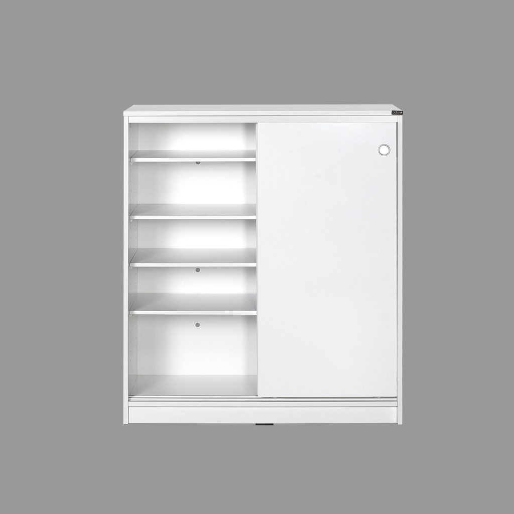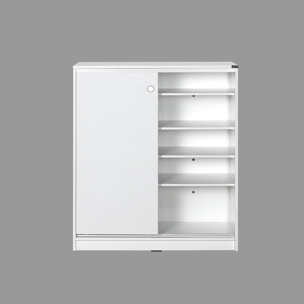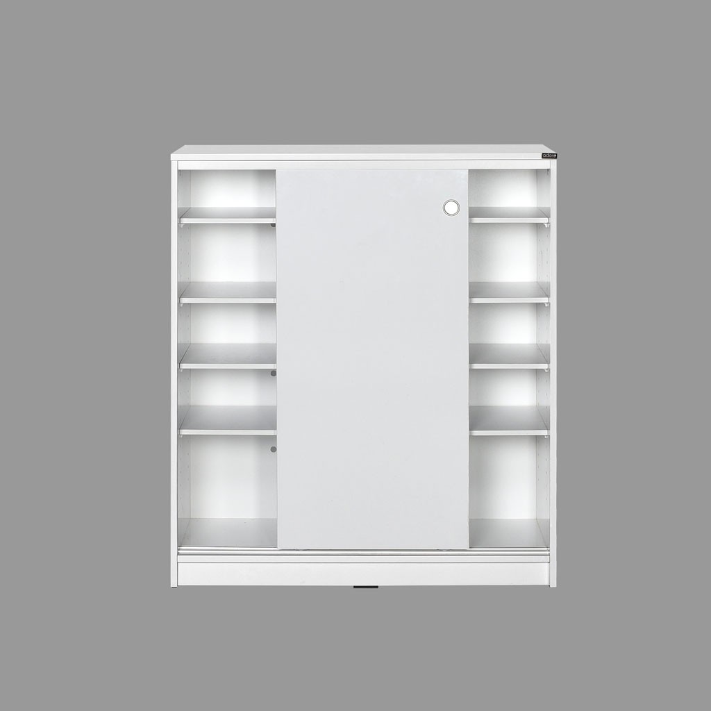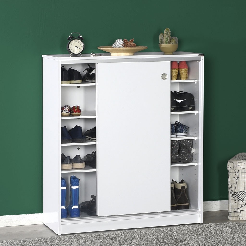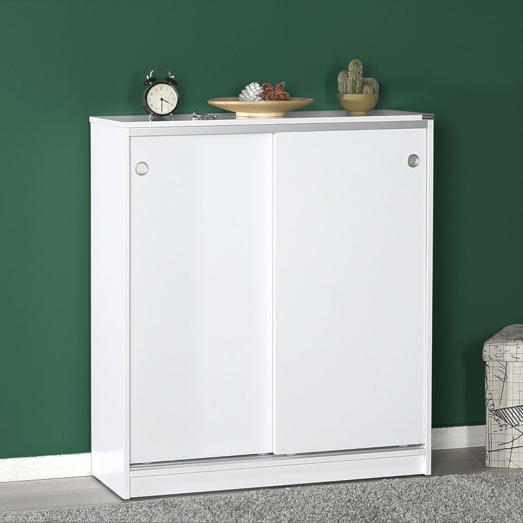 Preprosta omara za čevlje ADRON 322 s praktičnimi drsnimi vrati je na voljo v nevtralni beli barvi, ki se lepo poda v vsako predsobo. V notranjosti ima štiri premične police, ki vam omogočajo shranjevanje 25 parov čevljev, zato bo vaša predsoba vedno urejena.