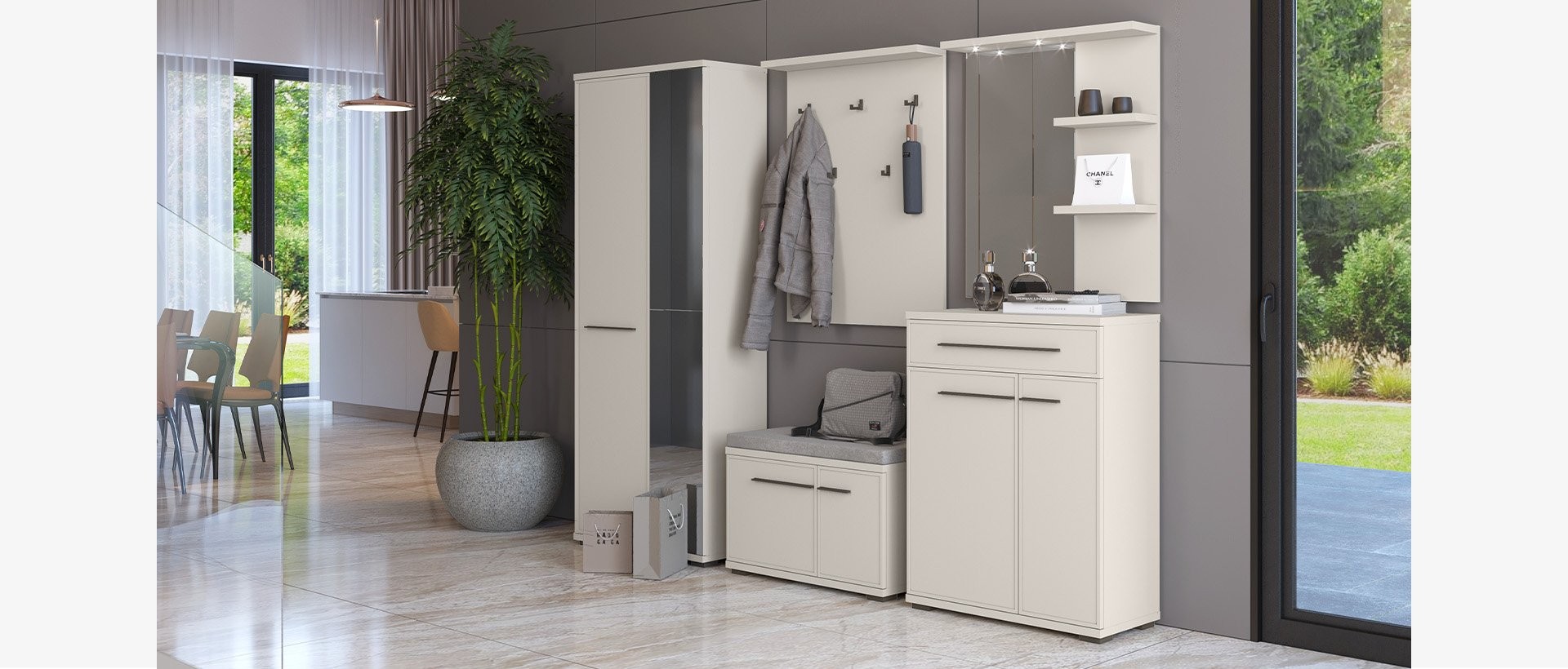 Omara za čevlje Milla Opera V1 je popolna izbira za vse, ki cenijo eleganten dizajn in vrhunsko kakovost. S svojimi profiliranimi okvirji in mat ročaji v barvi Cortado rjava mat združuje estetiko in funkcionalnost. Izdelana je iz visokokakovostnih materialov, kot so Univer Egger in UV mehak mat lak, kar zagotavlja trpežnost in dolgo življenjsko dobo. Notranjost v dekorju tekstila doda pridih razkošja, medtem ko nastavljive noge omogočajo prilagoditev vsakemu prostoru.