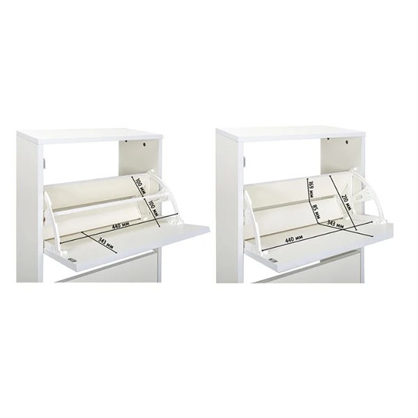 Opremite svojo predsobo ali hodnik s priročno omarico za čevlje TISA, ki ne zavzame veliko prostora, se zaradi minimalističnega dizajna odlično poda v vsak dom, ter vam nudi dragoceni dodatni prostor za shranjevanje vaših najljubših čevljev. Ima dvoja spustna vratca za katerimi se nahajata po dve polici za odlaganje čevljev.