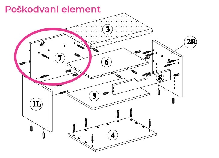 Omarica je popolnoma nova, nemontirana. Zaradi transporta pa ima poškodbo ne enem od elementov (element št 7 - hrbtišče).