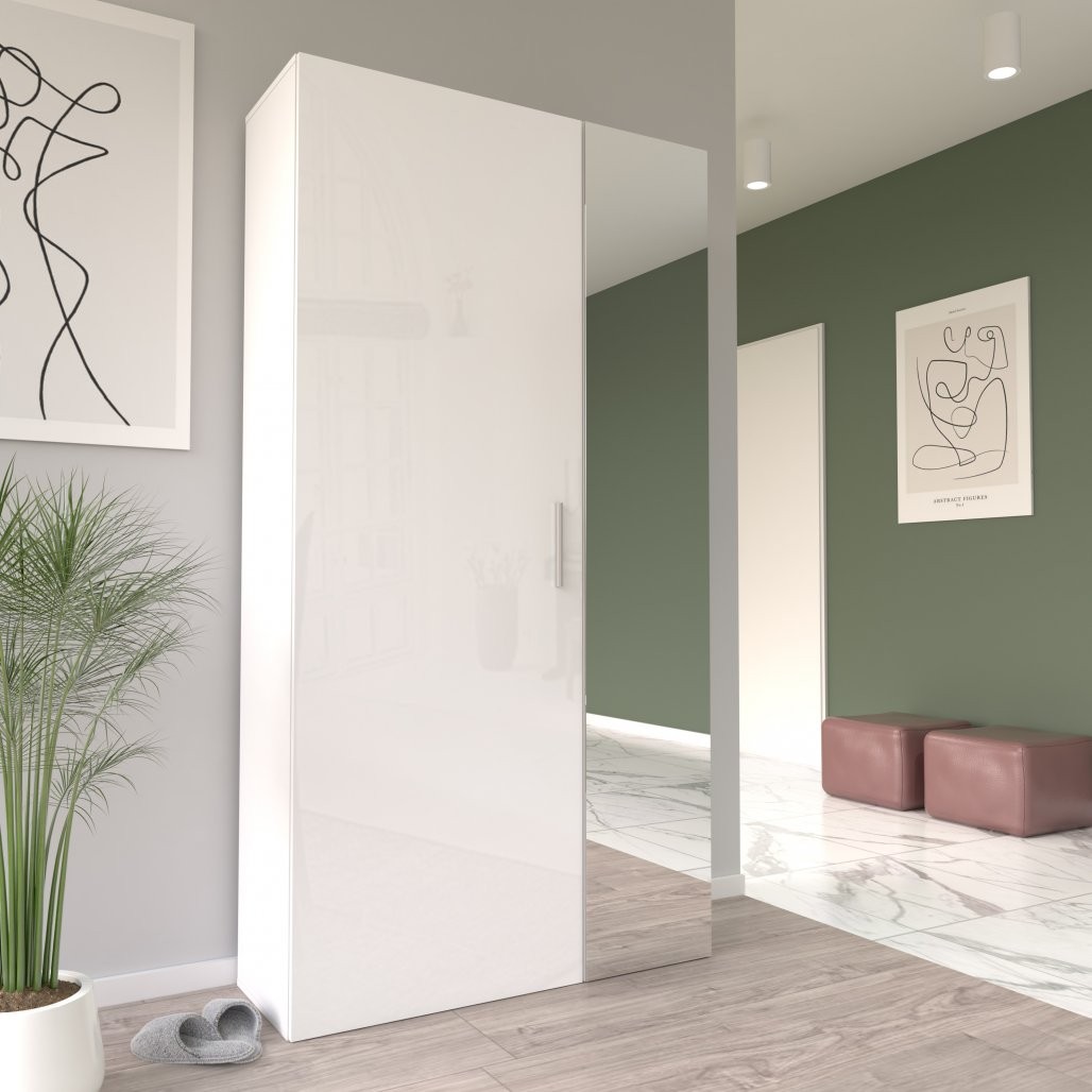Omara za čevlje YVONNE (bela visok sijaj) je popolna izbira za urejanje vaše zbirke čevljev. S sodobnim dizajnom in ogledalom je idealna za vsak hodnik.