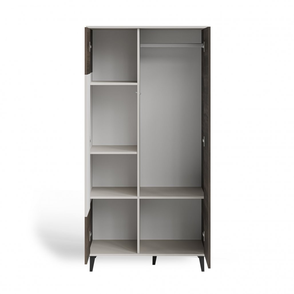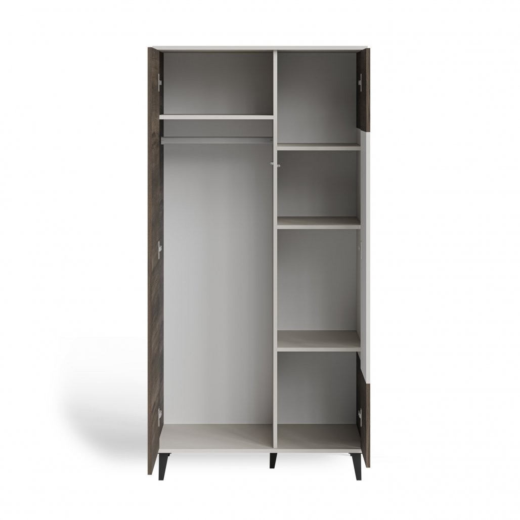 Izdelana je iz visokokakovostnih materialov, kot so laminiran MDF, laminirana iverna plošča in polipropilen, kar zagotavlja dolgo življenjsko dobo in enostavno vzdrževanje. Njena premišljena zasnova vključuje police in obešalnike, ki omogočajo urejeno in pregledno shranjevanje. Omara Zeran 2 je idealna izbira za tiste, ki iščejo kombinacijo stila, kakovosti in praktičnosti.