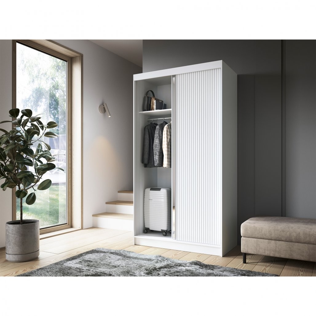 Omare z drsnimi vrati Biancco II z ogledalom so elegantna in funkcionalna rešitev, ki vam ne bo pomagala le vzdrževati reda v notranjosti, temveč bo tudi vizualno povečala vaš prostor. Ponuja priročno shranjevanje in estetski dizajn, ki v vašo notranjost vnaša modernost in svetlobo. Ta impresivna omara z merami 120 cm v širino, 220 cm v višino in 60 cm v globino zagotavlja dovolj prostora za shranjevanje oblačil, dodatkov in drugih predmetov, ki jih želite imeti na dosegu roke.