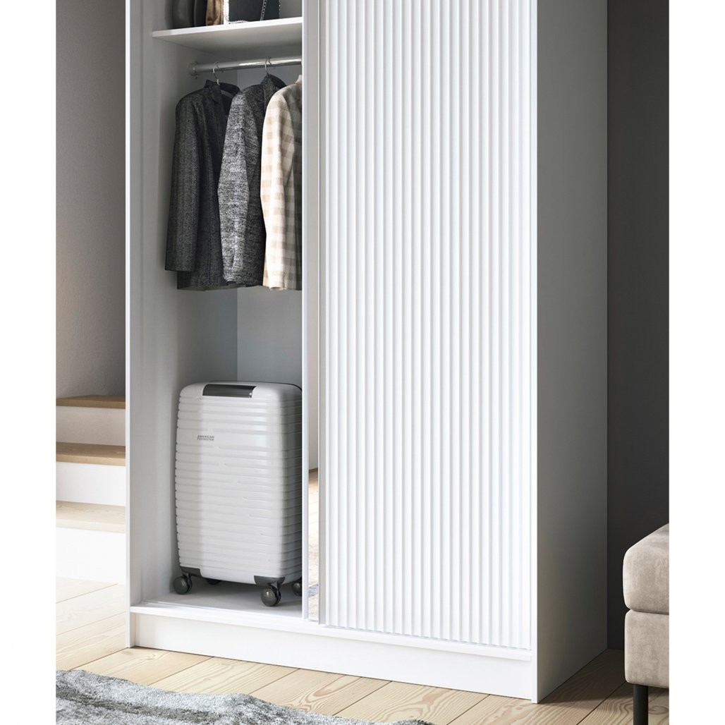 Telo omare je izdelano iz trpežne MDF plošče debeline 16 mm, njeni ABS robovi pa ne samo ščitijo pred poškodbami, ampak prispevajo tudi k splošni estetiki konstrukcije. Omara Biancco z drsnimi vrati in ogledalom je v beli barvi, ki daje občutek prostornosti in svetlosti v prostoru. Ogledalo na vratih omare ne olajša le ocenjevanja vašega videza, temveč tudi vizualno poveča prostor, kar je še posebej koristno v manjših prostorih.