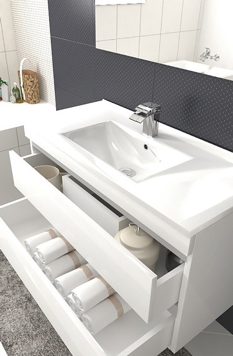 Omarica s predali CLOUD ima keramičen umivalnik širine 81 cm. Predali imajo mehko zapiranje in barva je nanešena v 3 plasteh.