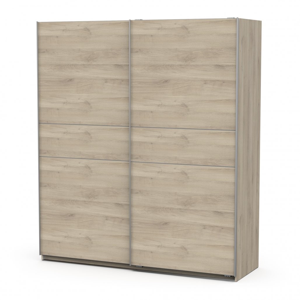 - Široka garderobna omara z drsnimi vrati, na voljo v mat beli ali sonoma hrast barvi