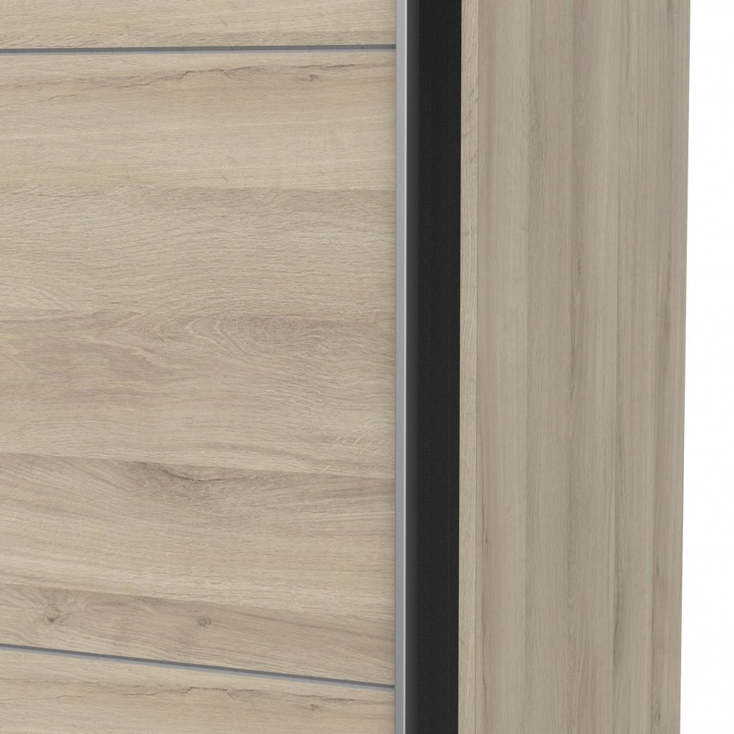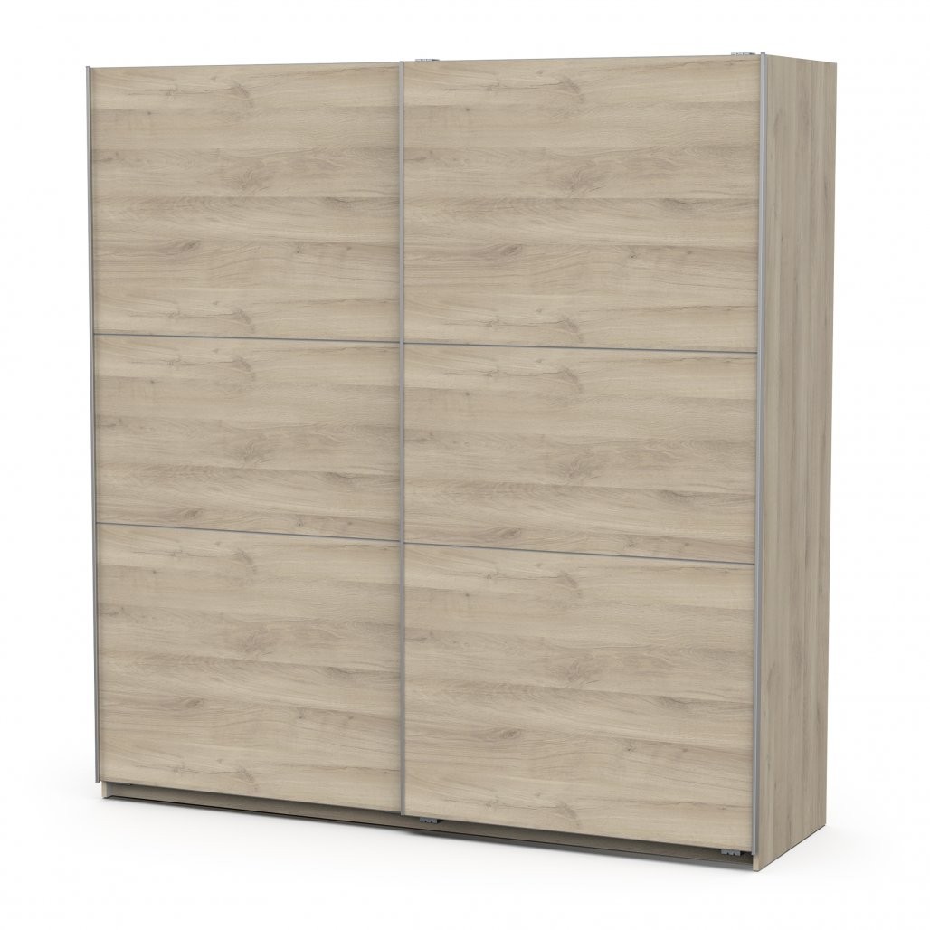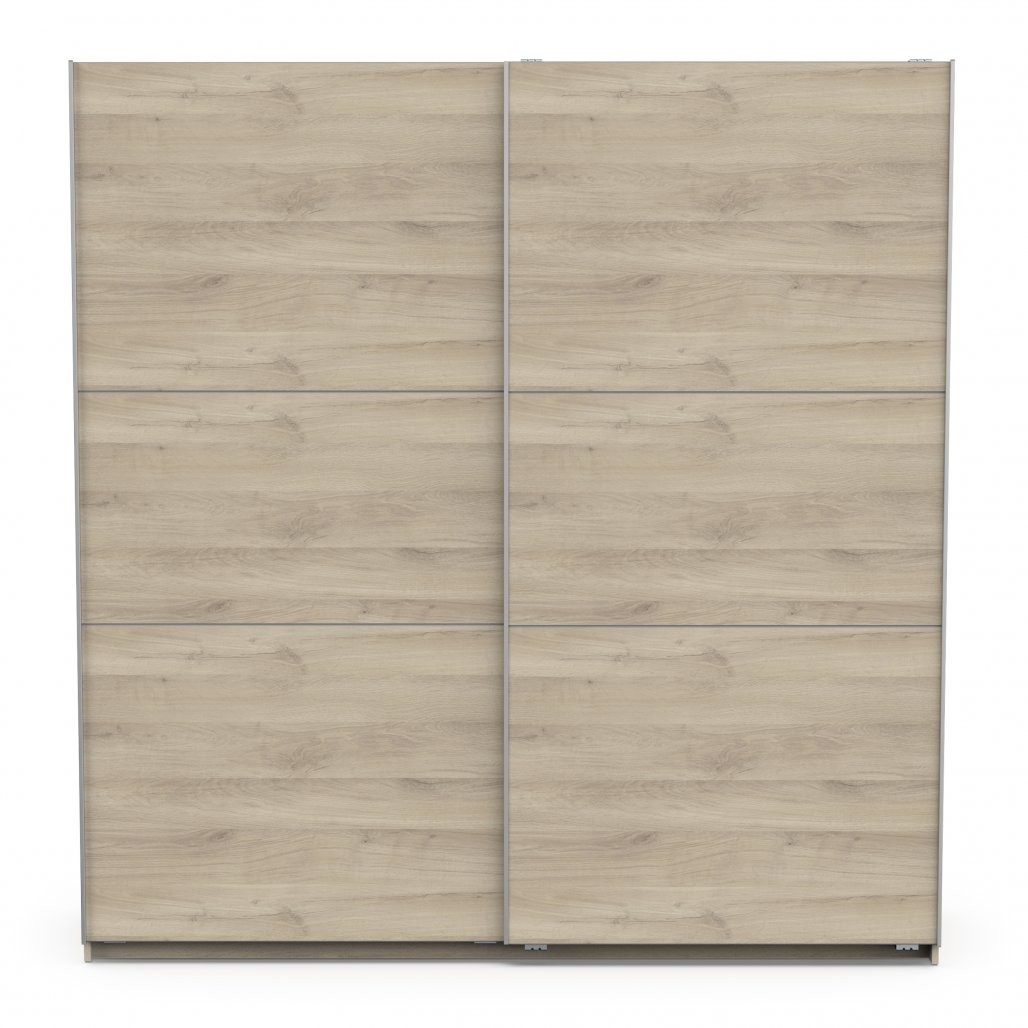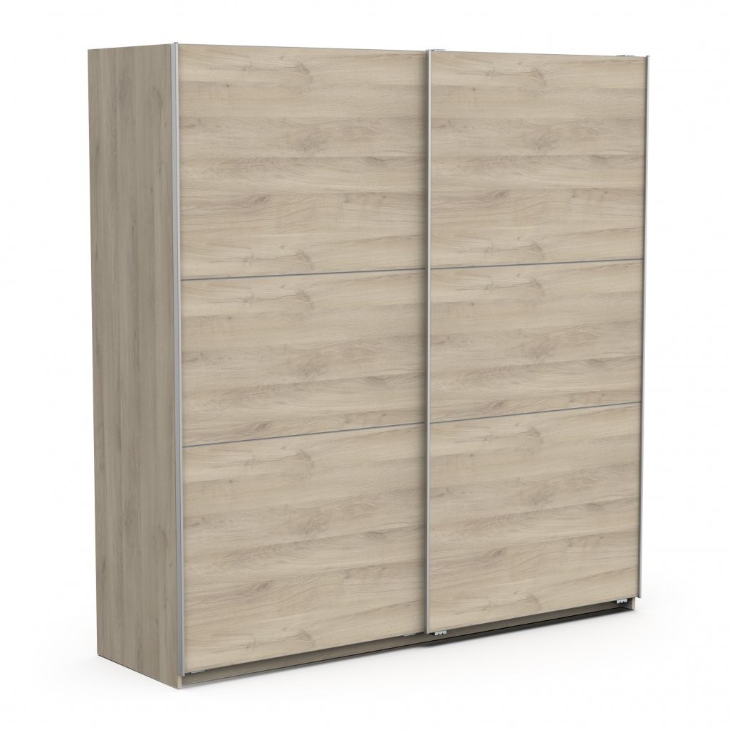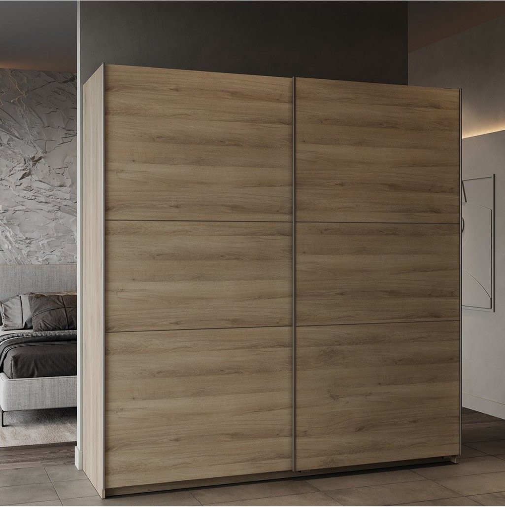 - Široka garderobna omara z drsnimi vrati, na voljo v mat beli ali sonoma hrast barvi