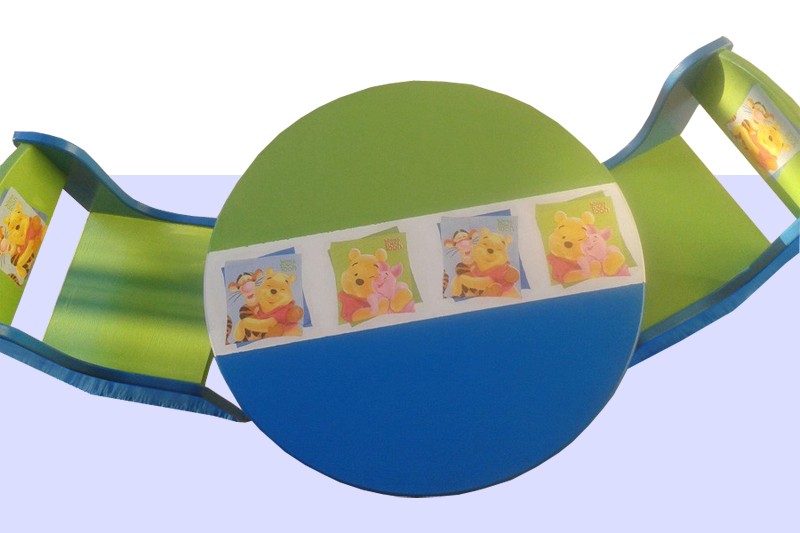 Otroška mizica in stolčka Medvedek Pu (zelena-modra) je unikaten komplet, narejen s servietno tehniko z motivom otrokovega najljubšega pravljičnega junaka. Izbirate lahko med manjšim ali večjim kompletom otroške mizice in stolčkov. Manjši komplet je priporočljiv za otroke do 4 leta, večji pa za otroke do 10 leta starosti. Otroška mizica je na voljo v kvadratni obliki ali z zaokroženimi robovi.