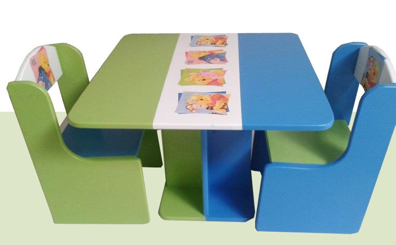 Komplet vsebuje: otroško mizico in 2 otroška stolčka (z možnostjo naročila dodatnega stolčka)