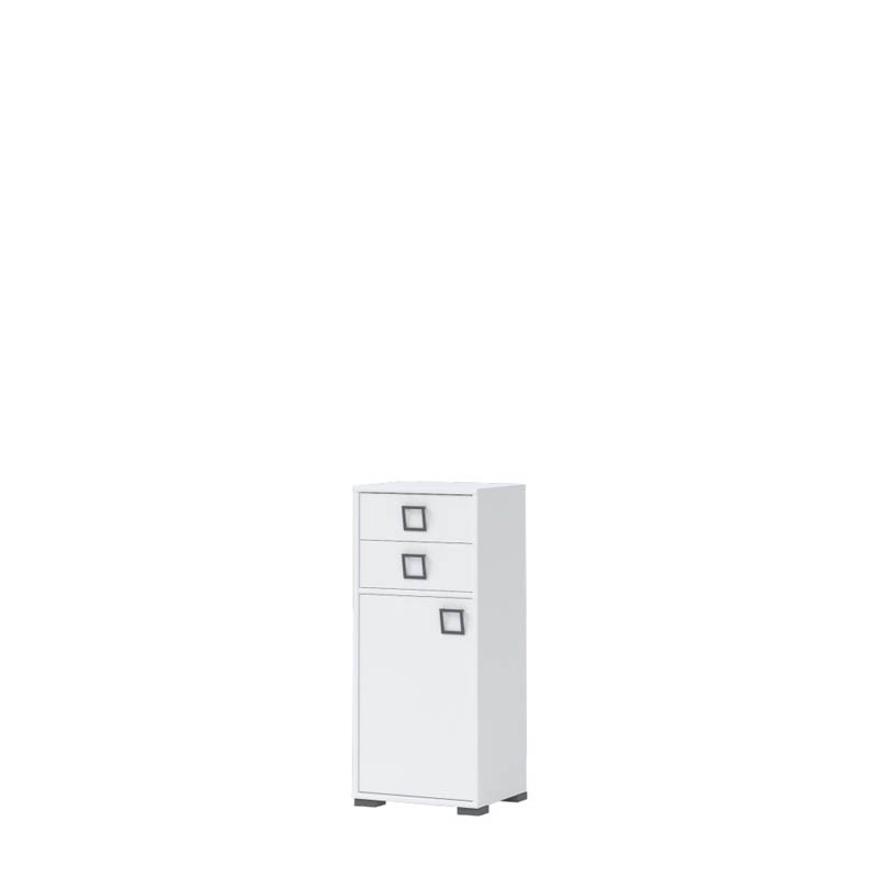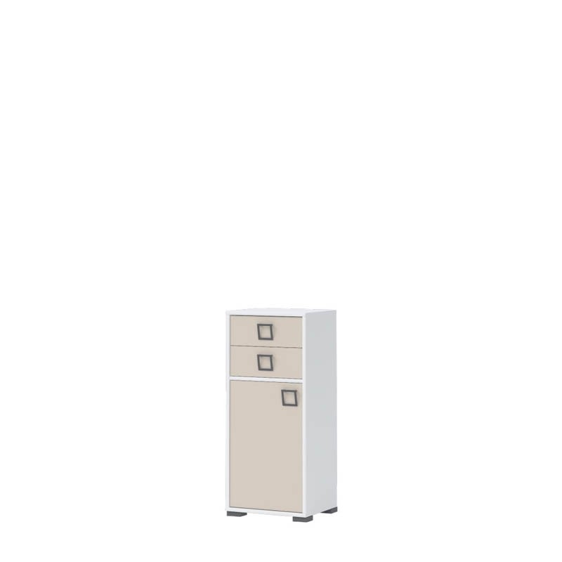 Otroška omarica Kiki vašemu otroku nudi dodatni prostor za shranjevanje raznih šolskih potrebščin, zvezkov in učbenikov, igrač in podobnih predmetov. Ima dva predala in ena vratca, za katerimi se skriva polica. Predala sta lahko na vrhu ali spodaj. Omarica je na voljo v 4-ih barvnih kombinacijah zato si lahko barvo izberete sami glede na lastne želje. Izdelana je iz oplemenitene iverne plošče in ima funkcijo tihega zapiranja.