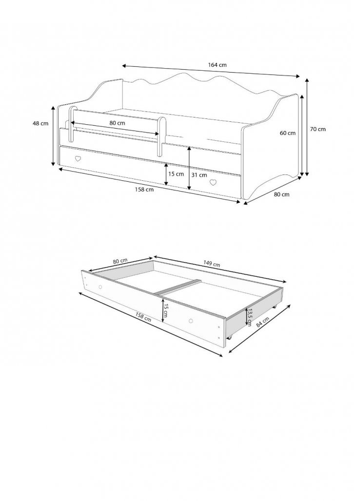 Otroška postelja EMKA je popolna izbira za mladinske in otroške sobe. S svojo preprosto obliko in elegantnimi barvnimi kombinacijami se brez težav prilega vsakemu prostoru. Komplet vključuje udobno penasto vzmetnico in prostoren predal na kolesih za shranjevanje posteljnine ali igrač.