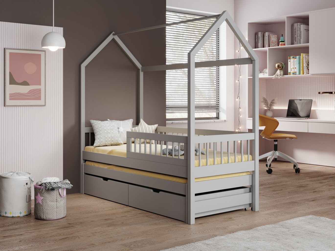 Otroška postelja Hiška Artes z vzmetnico združuje čarobno obliko hiške, udobje za dve osebi in praktične predale – idealna izbira za otroške ali mladinske sobe.