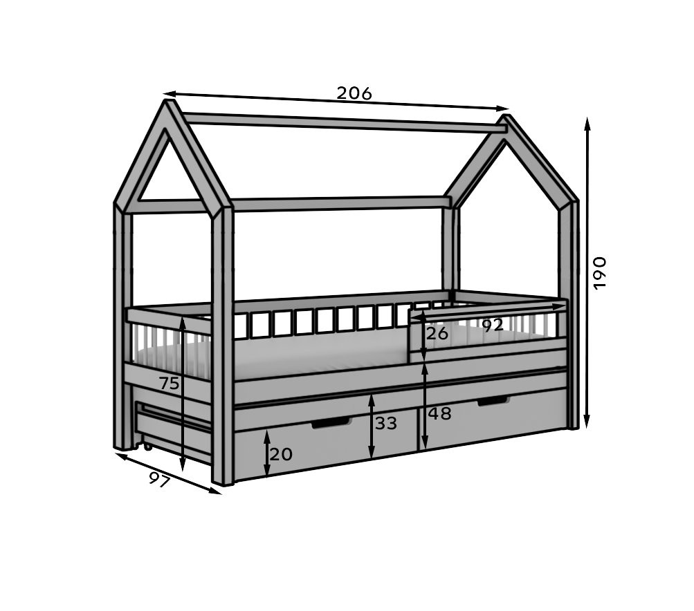 Otroška postelja Hiška Artes z vzmetnico je popolna izbira za starše, ki iščejo praktično in estetsko rešitev za otroško ali mladinsko sobo. Njena unikatna oblika hiške ustvarja prijetno in toplo vzdušje, ki spodbuja igro in sprostitev.