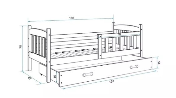 Preprosta vendar moderna postelja KUBUS je vse kar vaš otrok potrebuje. Postelja nudi udobno spalno površino ter predal pod posteljo, ki vam bo prinesel dodatni prostor za shranjevanje oblačil, igrač in ostalih stvari, ki vam povzročajo nered.