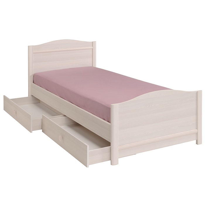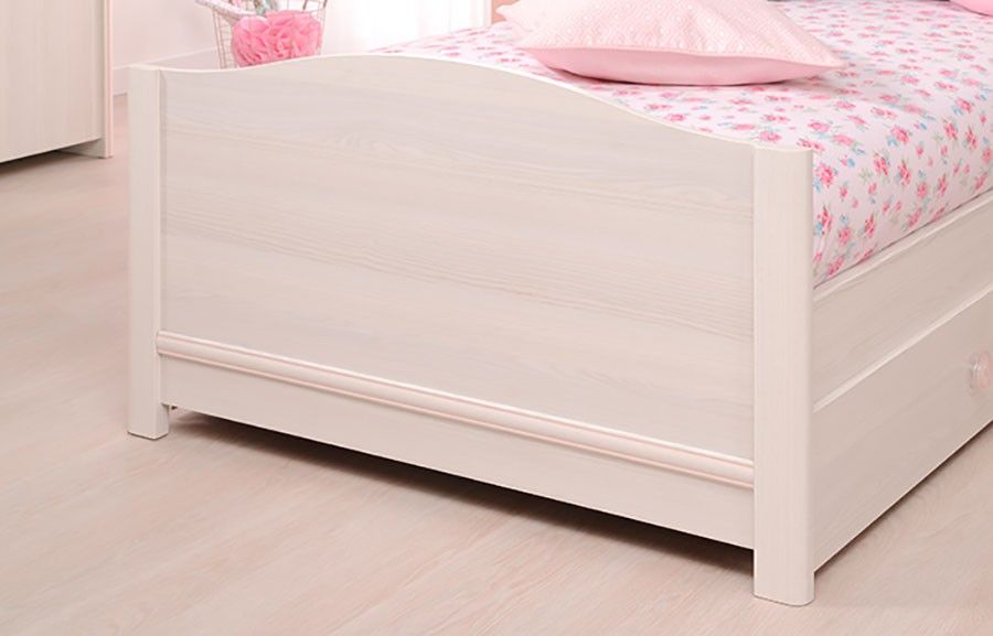 Otroška postelja MILA je postelja v svetlo rjavi barvi z roza detajli. Dimenzija ležišča je nastavljiva na 190 ali 200x90 cm. Postelja ne vključuje letvenega dna in vzmetnice. Ima tudi možnost dokupa seta dveh predalnikov.